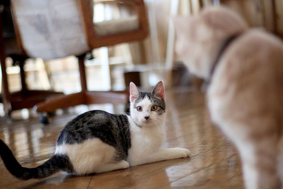 Then, what perhaps won me over, was a few weeks ago. We had a meal at the farm with visiting missionaries. At some point, some child left the front door open. Well, in wandered Curiosity. He came straight over to the table and looked for a lap to hop up on. He tugged at my heartstrings right away. . . then he tugged even harder after we gathered in the living room. I locked eyes with a pleading Curiosity. He so much wanted to be inside with us.