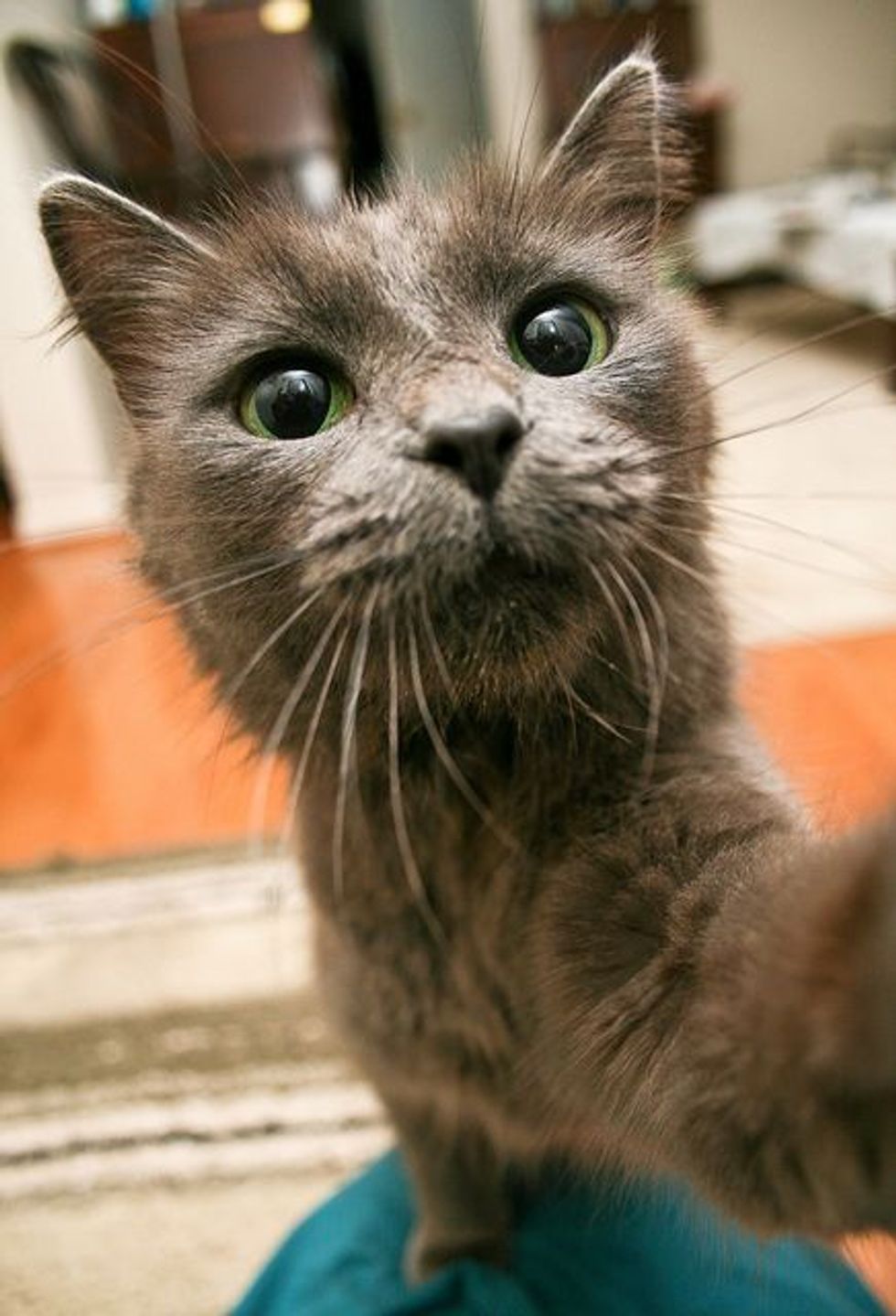 Penelope is still waiting for her forever home. You can adopt her here. We were hoping to keep her, but she really hated our cat-friendly dog and even after several weeks she was just too stressed out by her. Penelope is a sweet lap kitty who would do best in a fairly quiet home. She loves to follow her people around, rub against legs and cuddle up on the couch. She is just two years old and is a petite little girl. She is absolutely stunning with sleek grey fur, bright green eyes, and a gorgeous plume-like tail.