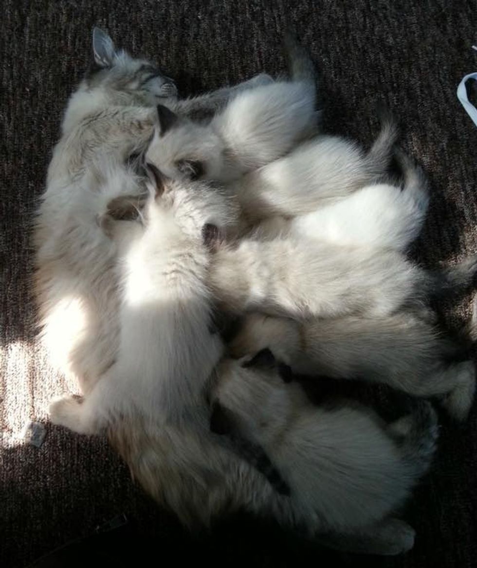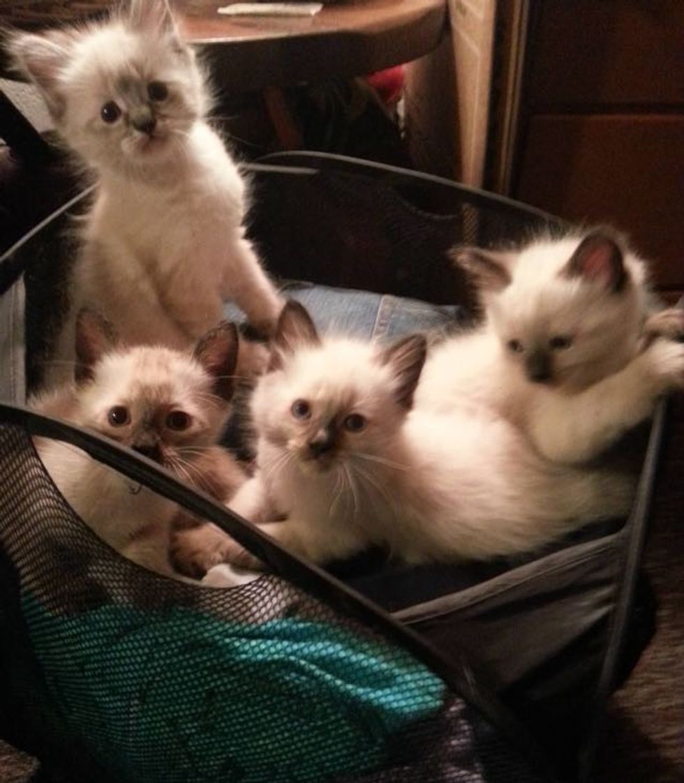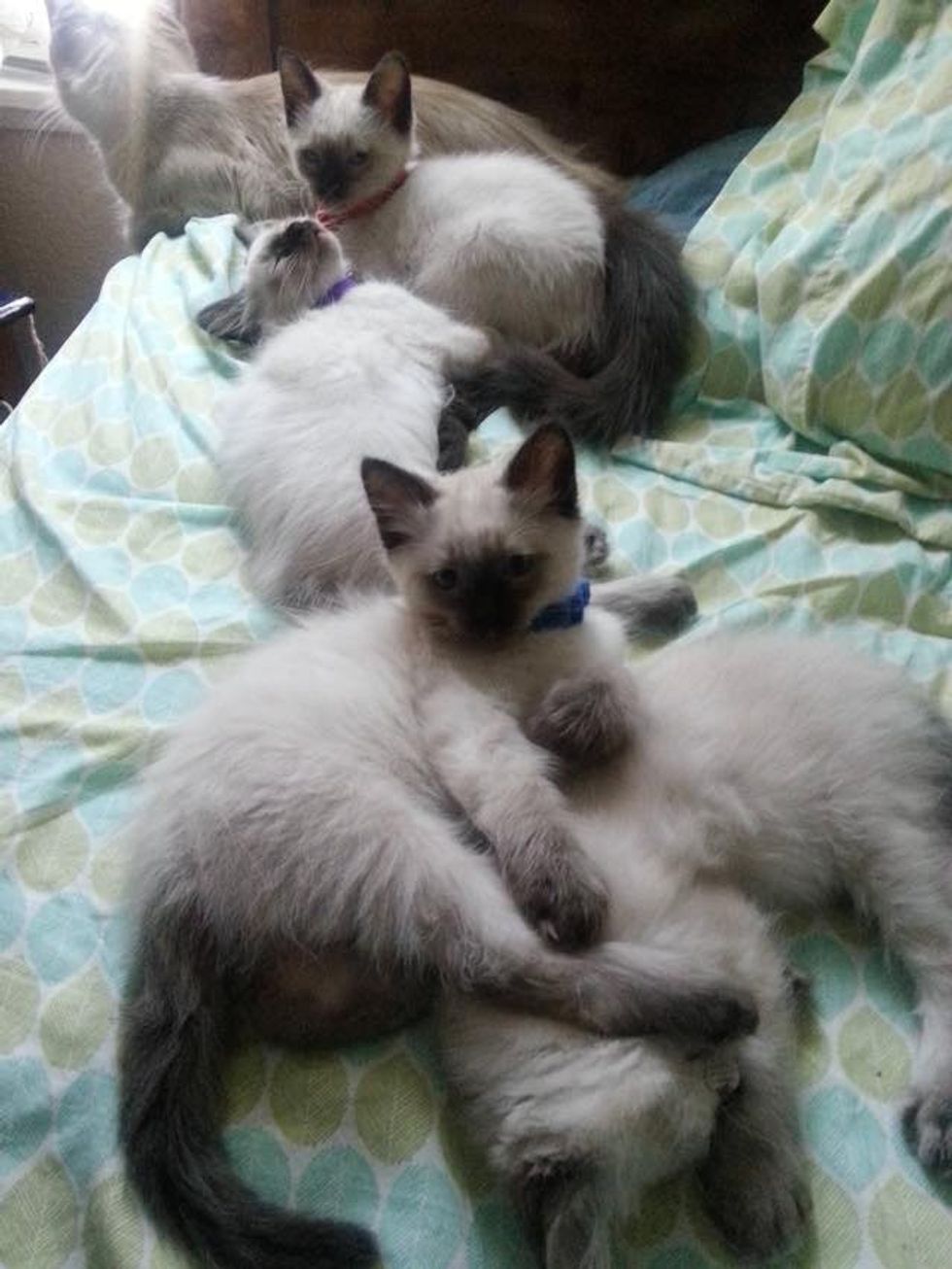 They brought home a stray cat, two months later she gave them seven little surprises. In just eight weeks, they went from no cats to eight kitties that all look alike.