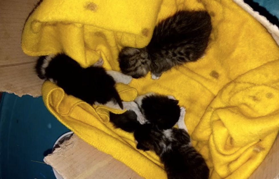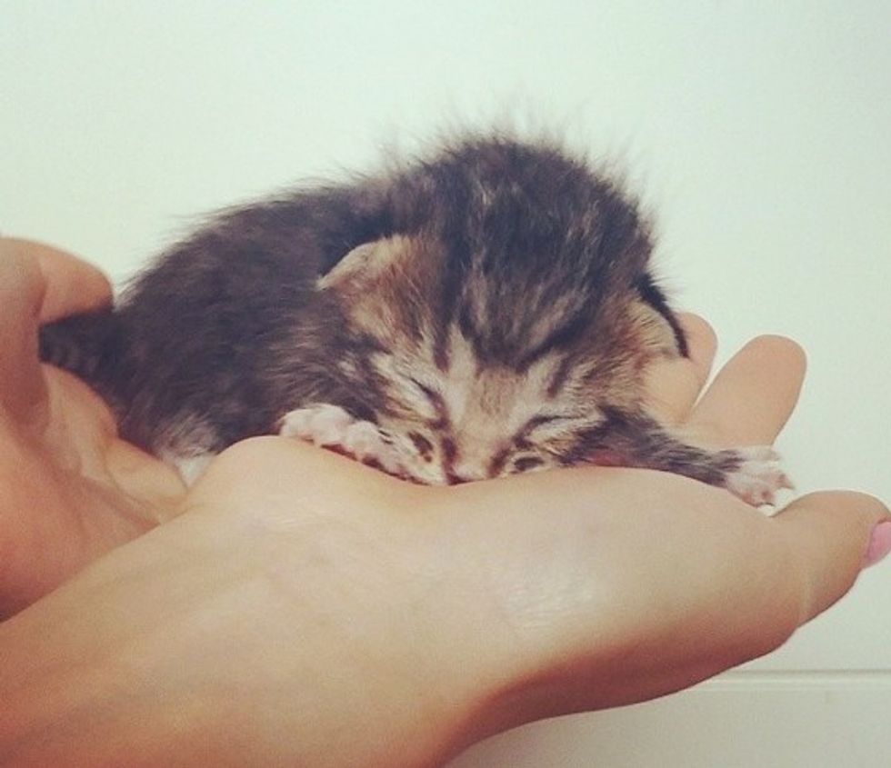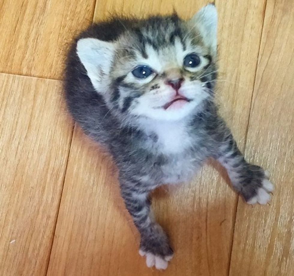 This tiny baby kitten was found in a parking lot along with his three siblings. Ari and Miu, two sisters, spotted the kittens and knew right away that they had to save them. "We couldn't leave them on their own, so we decided to rescue them. The first thing they needed was food because they hadn't eaten for a long time," they said.