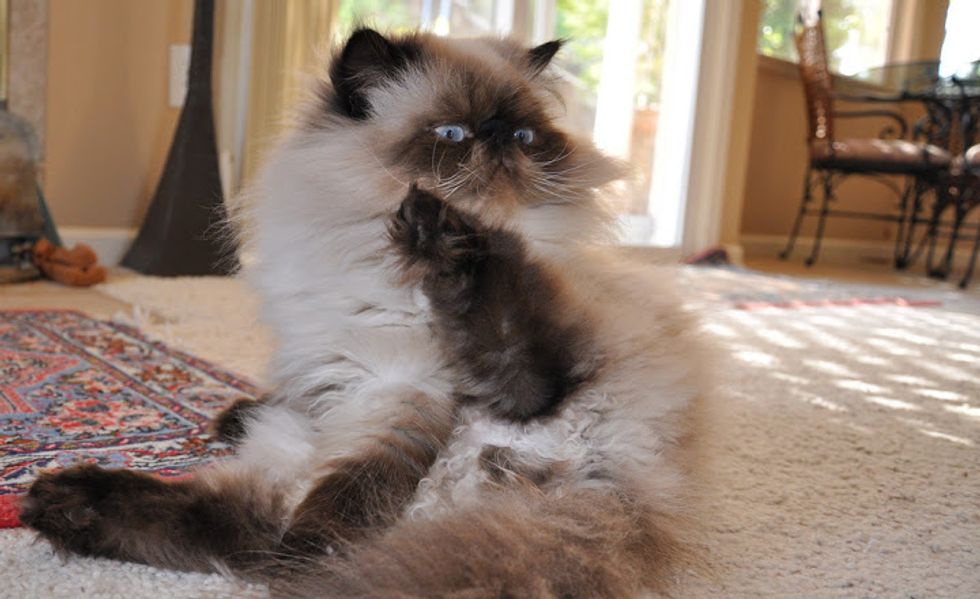 Sweet Mishka's story has a bit of a sad beginning. Two years ago a group of 95 cats were brought into one of our local rescues, Purebreds Plus Cat Rescue. The cats had been taken from a home of a breeder who had kept approximately 130 cats in terrible conditions and 95 of them were lucky enough to survive their ordeal. Mishka was one of the younger cats from that group and he was 1.5 years old when he was rescued. He was extremely shy and timid in the beginning but with the wonderful care of his foster moms, he started to blossom into a sweet little boy.