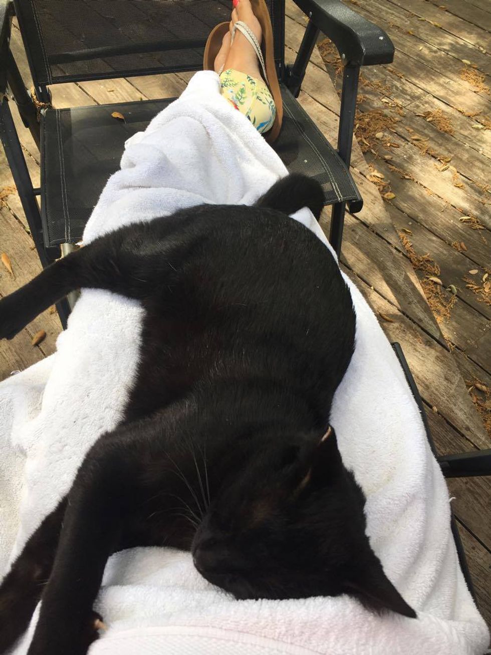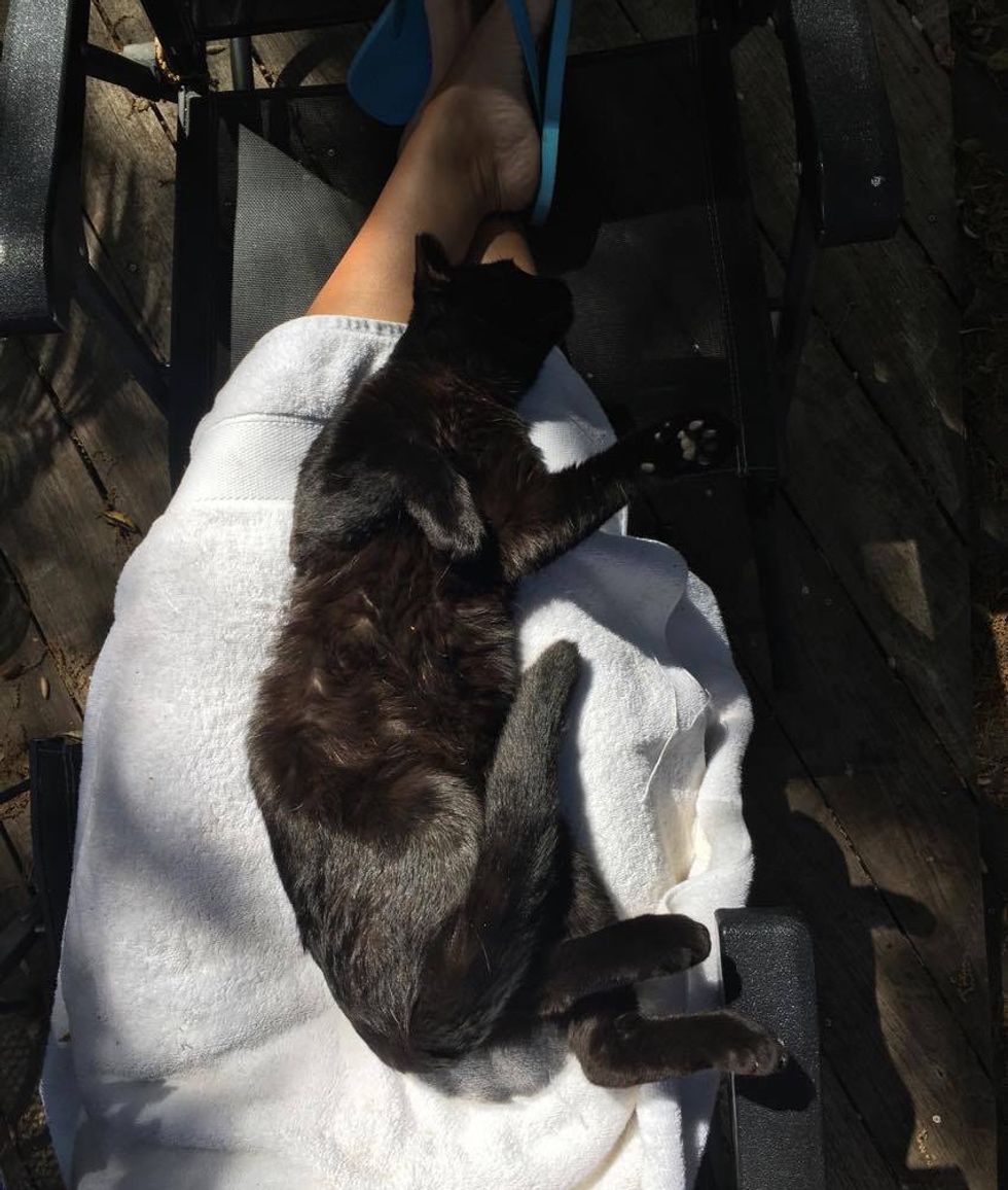 Months after they moved into their new home, Lemon Pie suddenly decided to walk into his humans' house and nap on their bed for the very first time.