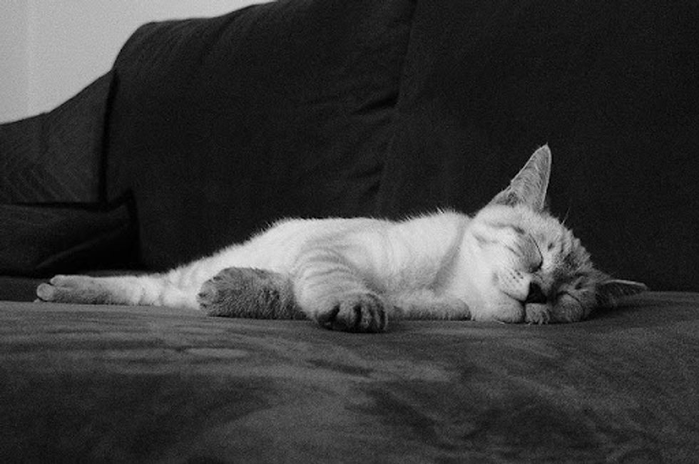 When Steve was ready to get fixed, he wasn't so nervous after all. "The tiny cat was considerably more comfortable with being neutered than we'd expected him to be. He pretty much got home, wiggled out of his mini e-collar, and got back to being adorable."