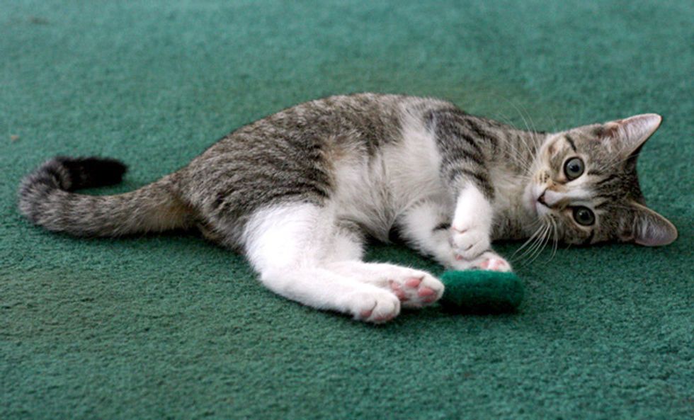 We saw a lot of different kittens until one particular cage with three little cuties. The shelter volunteer told us they had been abandoned in a cardboard box in front the shelter after-hours. Monte was very sweet and mellow, so he was a definite. We held all three, and Maija went right over to Monte and fell asleep cuddled next to him. The last kitten was not interested in the other two and kept trying to explore the room.