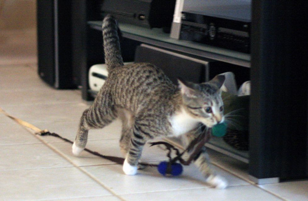 We named Monte for Monte Carlo. My husband is Finnish so we picked a Finnish name for Maija ("My-ah"). Maija likes to pluck the feathers off of her toys, chase string, and chew cardboard boxes. Monte has his favorite mouse, and also enjoys destroying cardboard boxes and paper. They follow us around to whatever room in the house we're in, sometimes sitting on our feet. They greet us at the door when we come home from work, bold Monte darting forward, skittish Maija hanging back a bit. The best part about having them is waking up with a cat wrapped around your head, or when they curl up in your lap for cuddles, or when they cuddle and groom each other :).