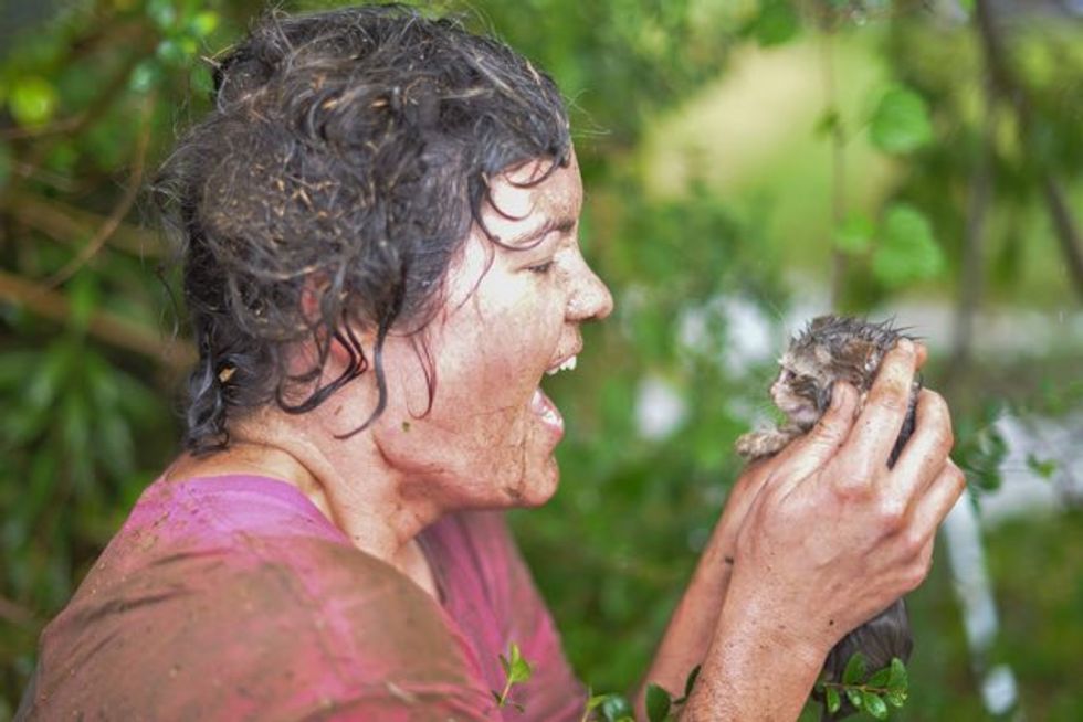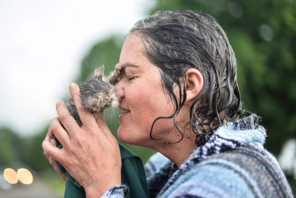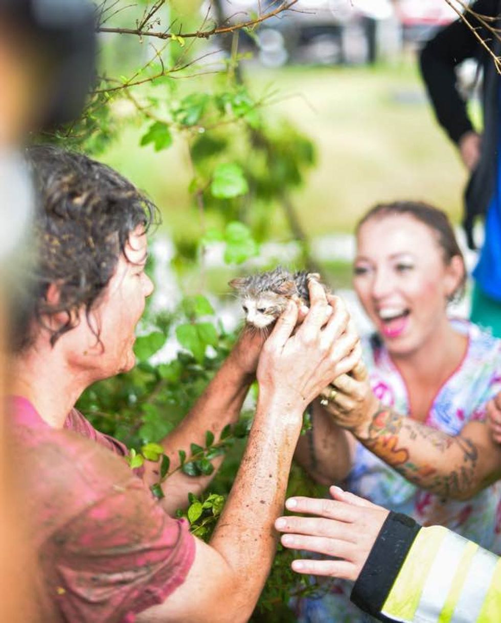 Dorella Tuckwiller, the founder of Itty Bitty Kitty Committee rescue group in Charleston, West Virginia, crawled head-first into a storm drain pipe, immersing herself in the water to save the weeks-old kitten from drowning.
