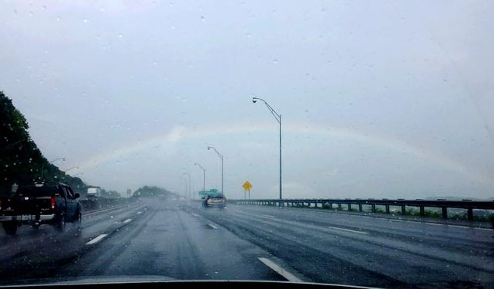 "On our way to the doctors office with her a huge rainbow crossed the interstate. We took it as a sign from those precious cats who crossed the rainbow bridge too soon, but also reminded us about beauty after a storm. Thank you to all of the volunteers who came to our aid."