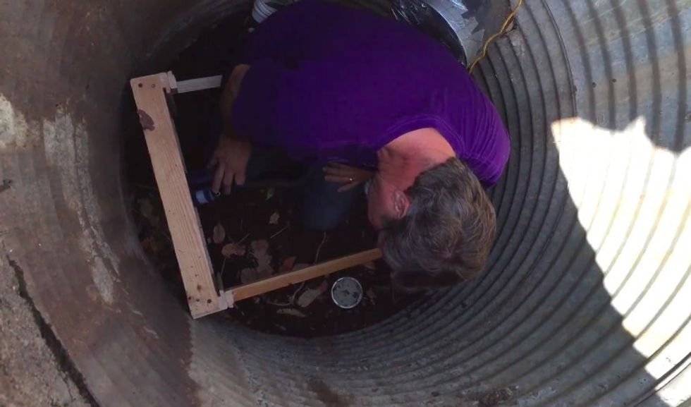 They found Megan Welch, a young energetic and very limber animal rescuer who came to the scene and went into the pipe to get the kitten.