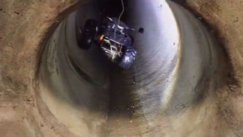 They put a trap into the hole with sardines to try to entice the kitten out of her hiding spot. Then they found another manhole 350ft away, and used a radio controlled car to try and get her to the other end where a trap was in place.