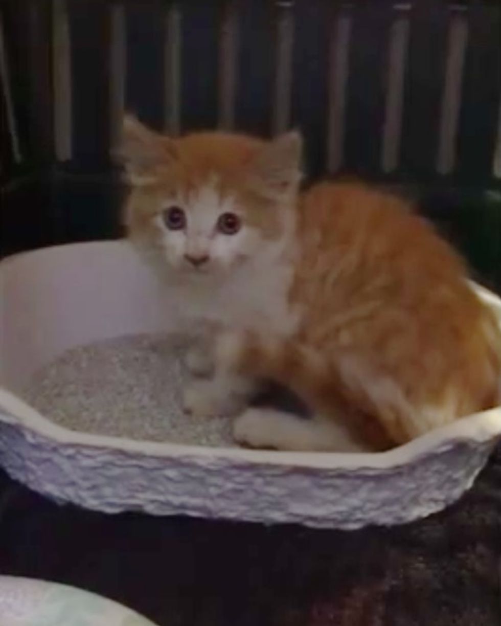 The kitten was very frightened after the rescue but Megan spent time to comfort her and showed her love. Slowly she began to turn around and even let her rescuer pet her.
