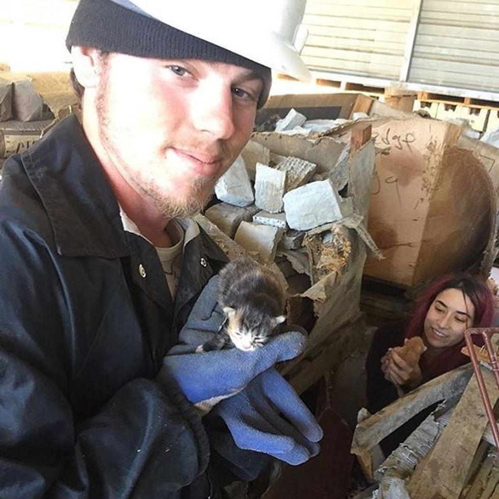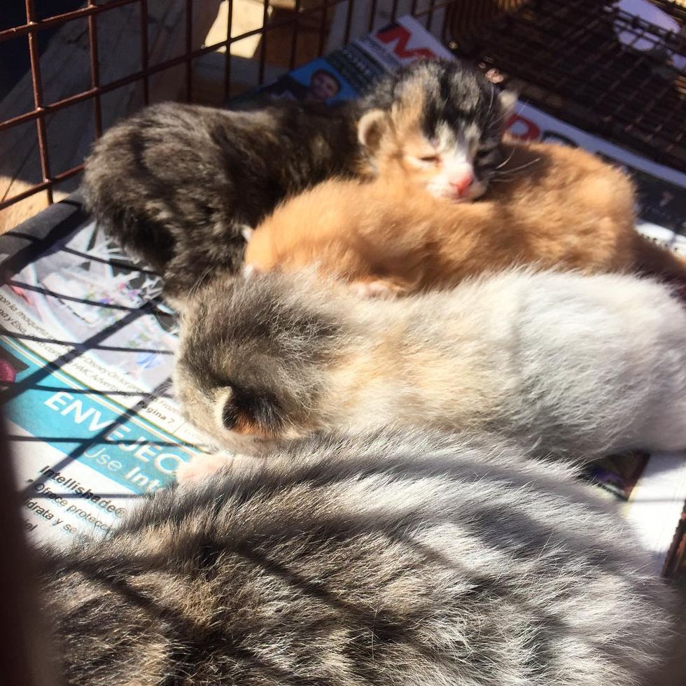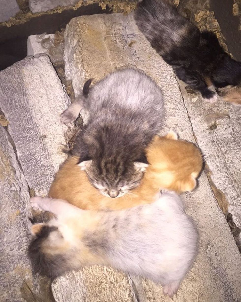 The mama immediately ran off. The kittens were living in a pallet full of bricks. "With one of the workers' help, we cut into the pallet to find some very young kittens living inside. Unfortunately two had already passed," Malia told Love Meow.