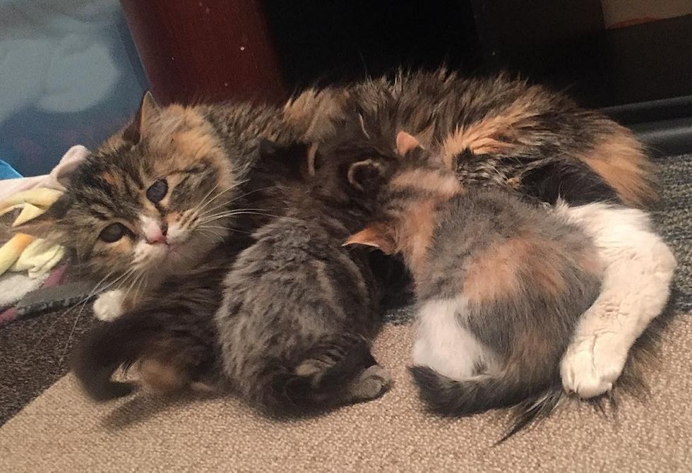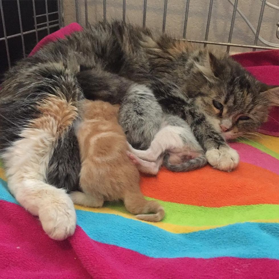 Despite being feral, mama started to accept help when she realized that the humans were providing shelter, food and warmth to her babies.