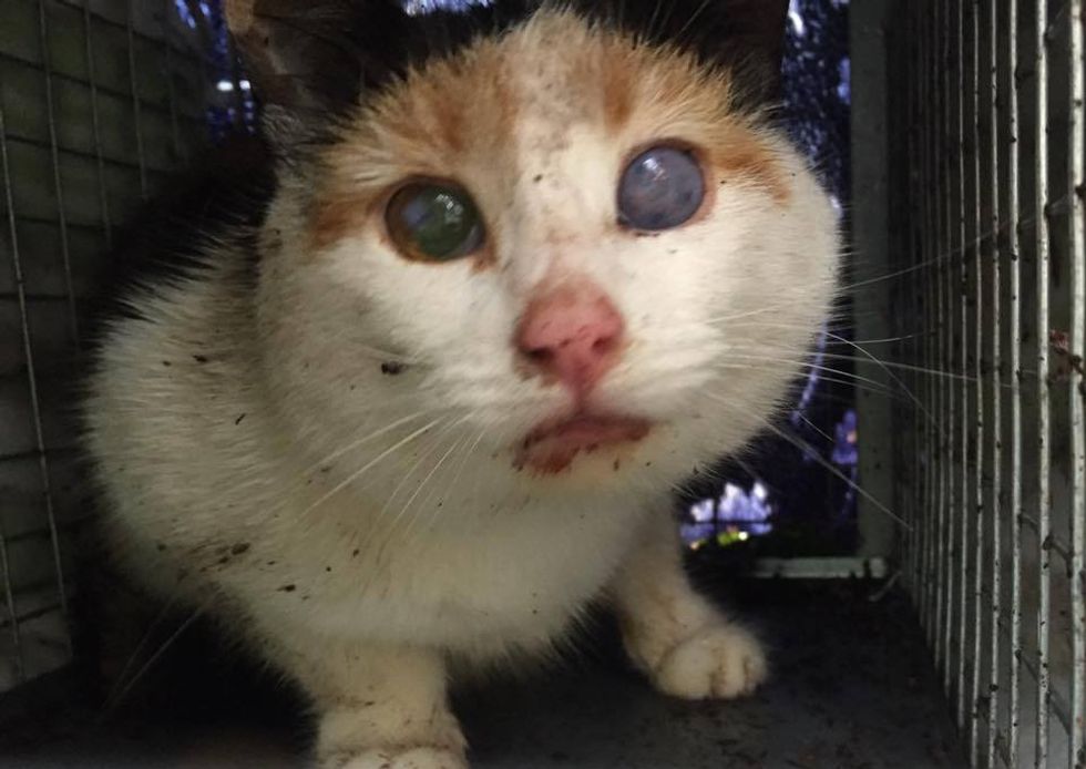 A feral cat was going blind, fending for her life. A group of rescuers took her out of the forest. Not only did they save her, but also four tiny fur babies in her belly.