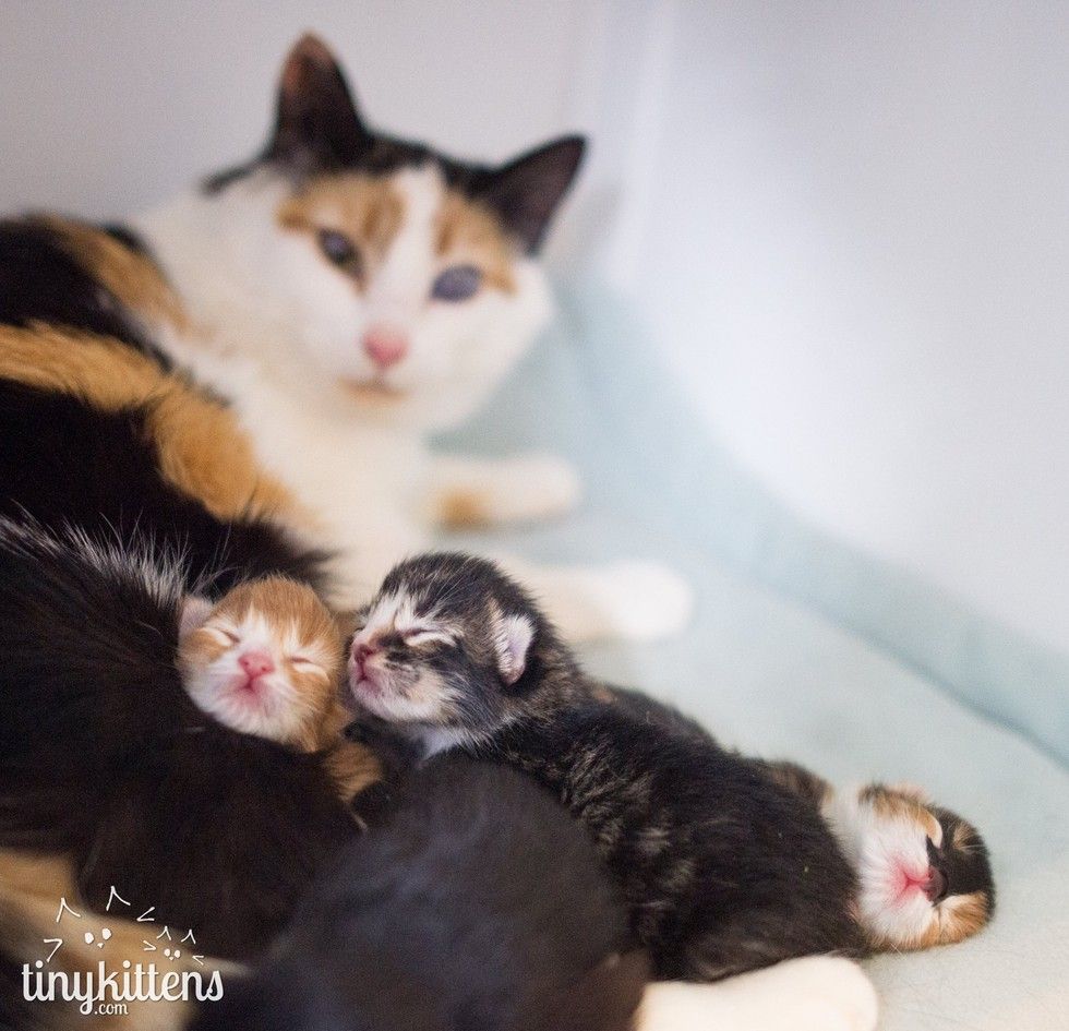 A beautiful calico had lived in a feral colony in Ft. Langley, British Columbia for all her life. One day, caregivers from TinyKittens Society saw her growing belly and cloudy eyes, and knew she was getting really sick by the day and needed immediate help, so they sprang into action.