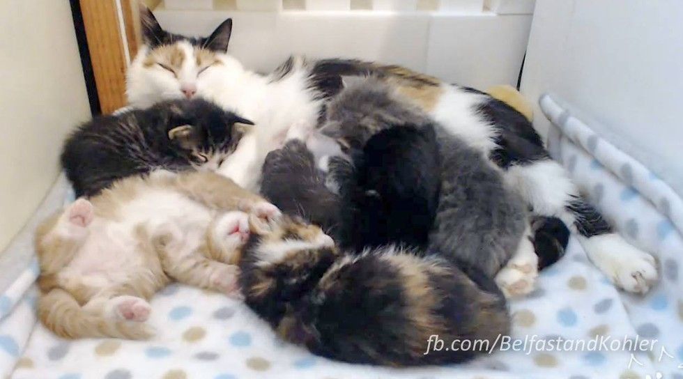 "She has been allowing us to give meds and handle kittens to weigh and monitor them, which is pretty incredible for a newly formerly feral cat," a caregiver wrote in an update.