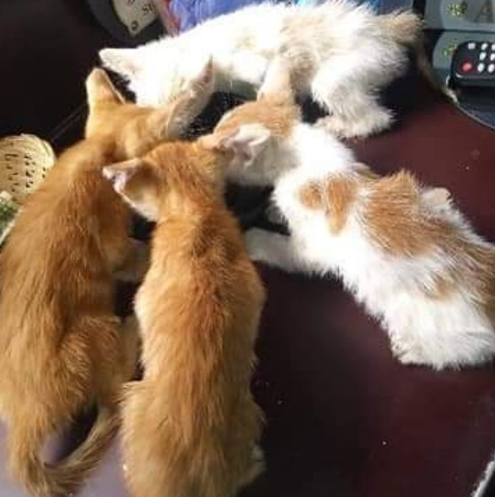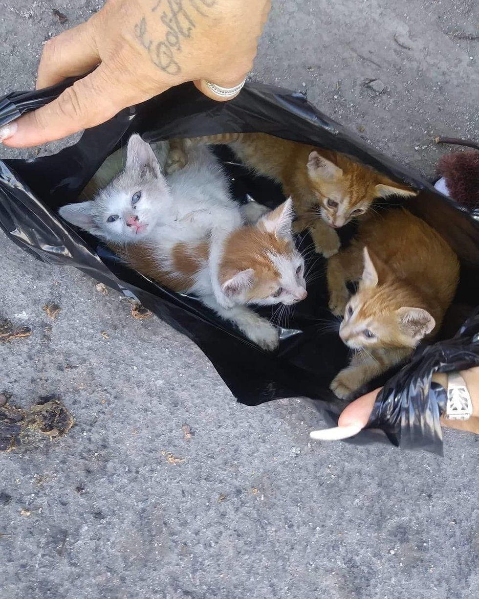 A Good Samaritan from the area heard meowing in an alley and found four little kittens in a plastic bag. "She took them into her home to feed them and give them water. They were so thirsty and thin," Brenda shared with Love Meow.