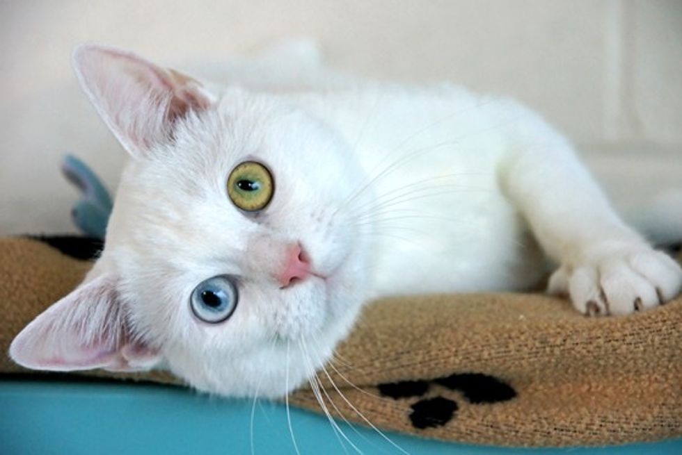 Reynard came from a violent home. "While they're sorting their lives out, the rescue centre fosters their pets. When it's safe, their pets are returned to them. It means a lot to the families - especially the children - to know their pets are safe and that they'll see them again," said Helen H. He's very jumpy and nervous, but also incredibly affectionate. He Gives a lot of nose kisses! When people walk away, he cries and looks pleadingly at them with those gorgeous big eyes.
