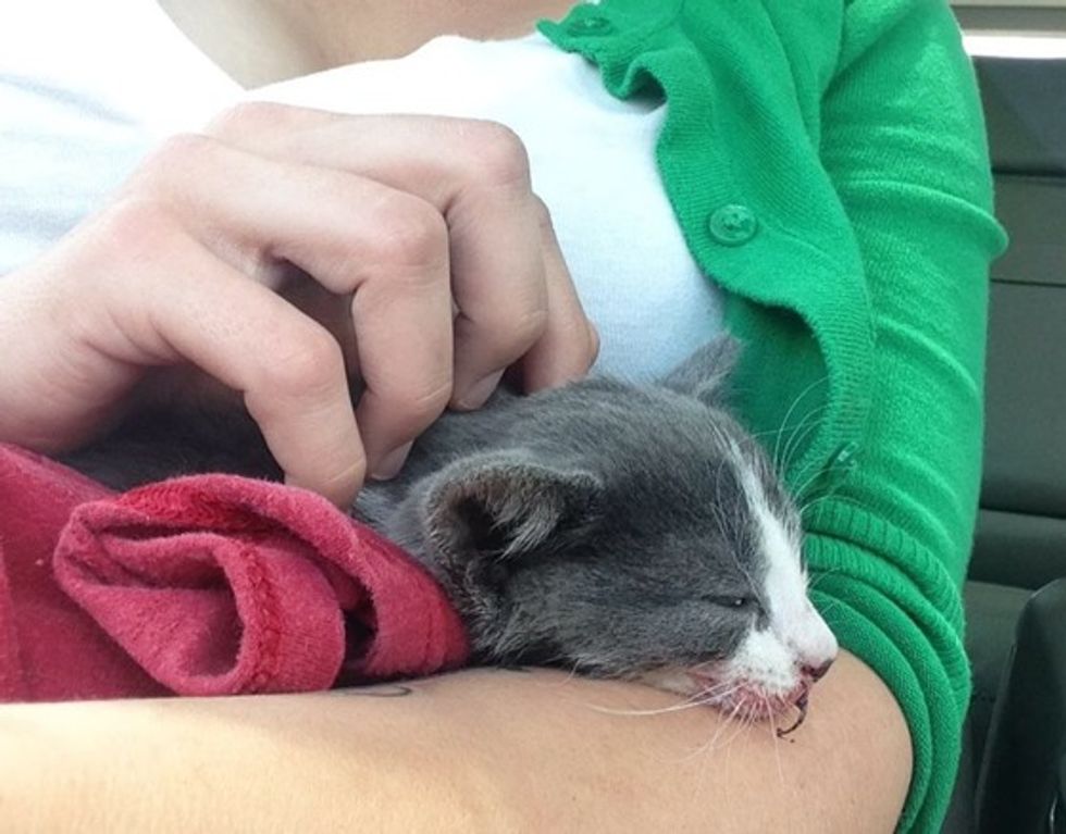 A tiny kitten was found on the side of the road injured by a moving car, but the little one bounced back after being rescued by kind people who wouldn't give up on her.