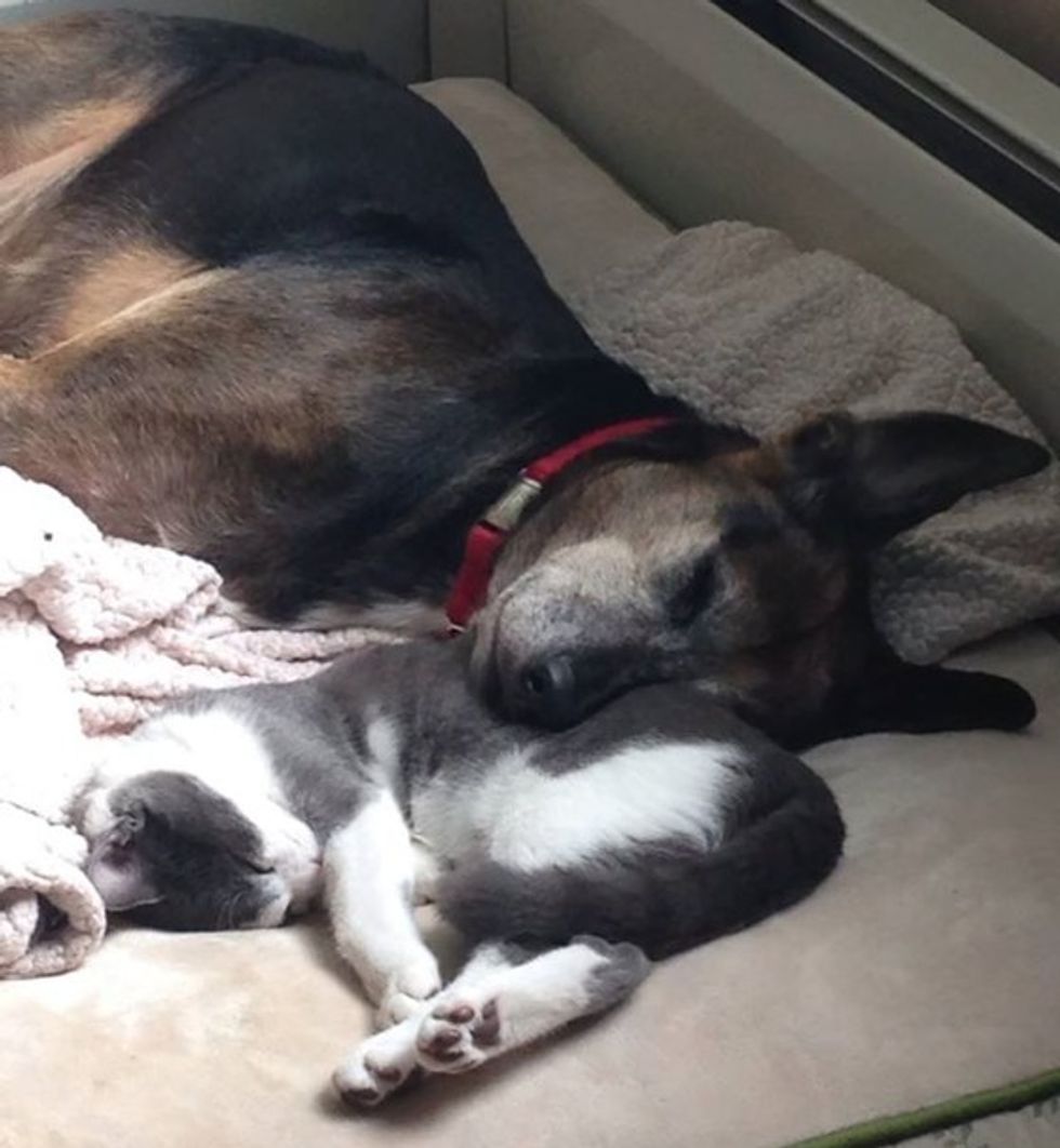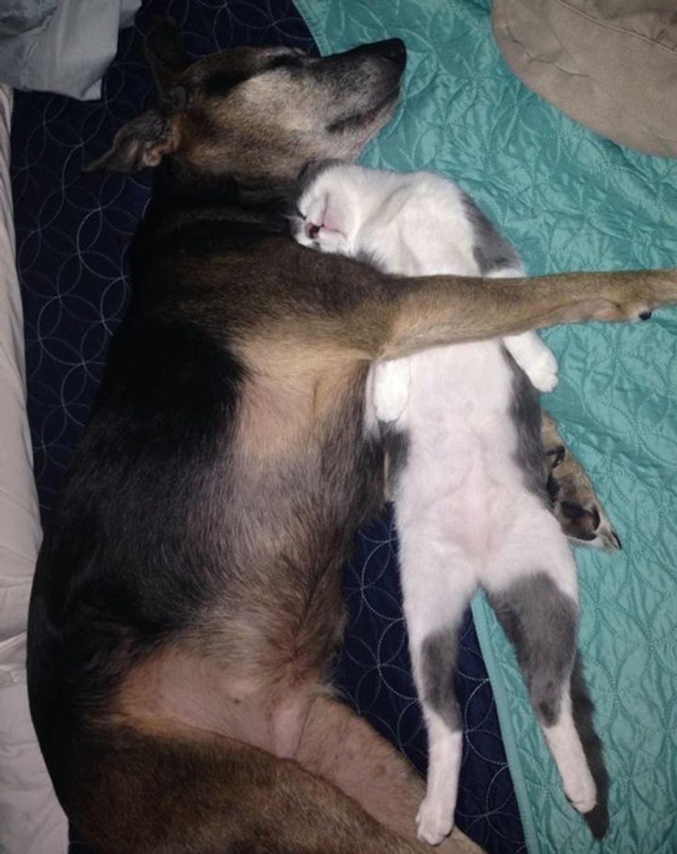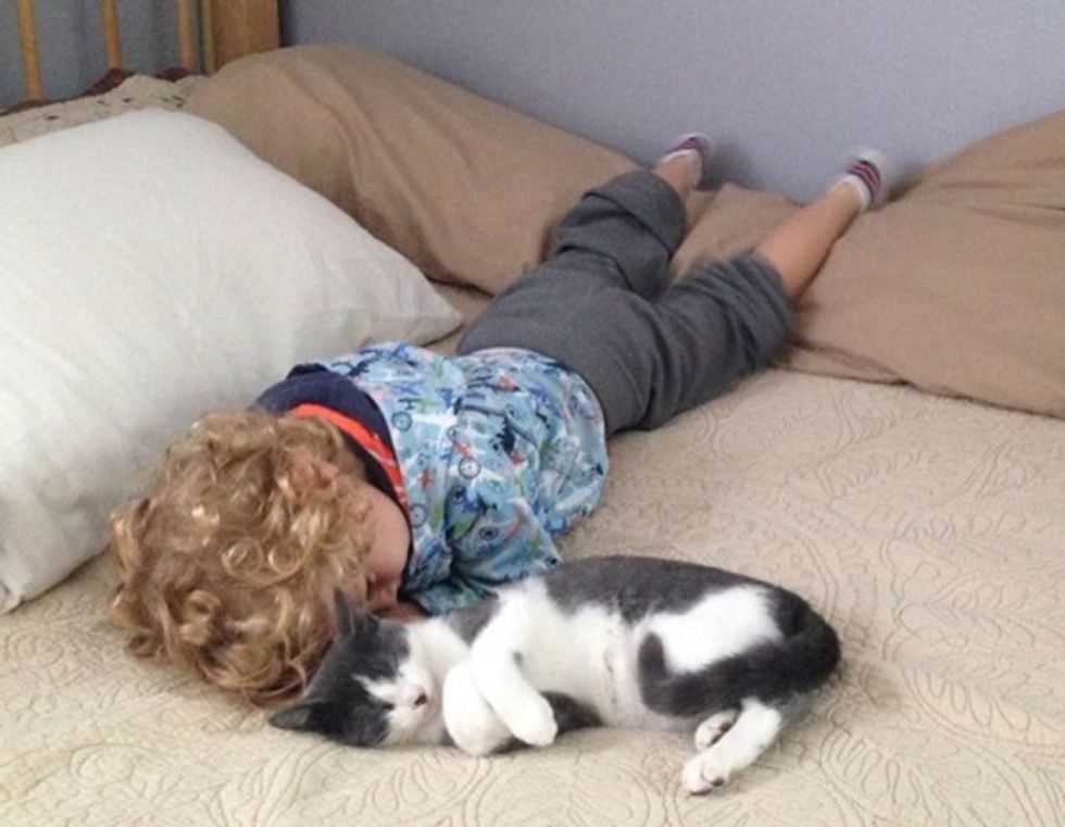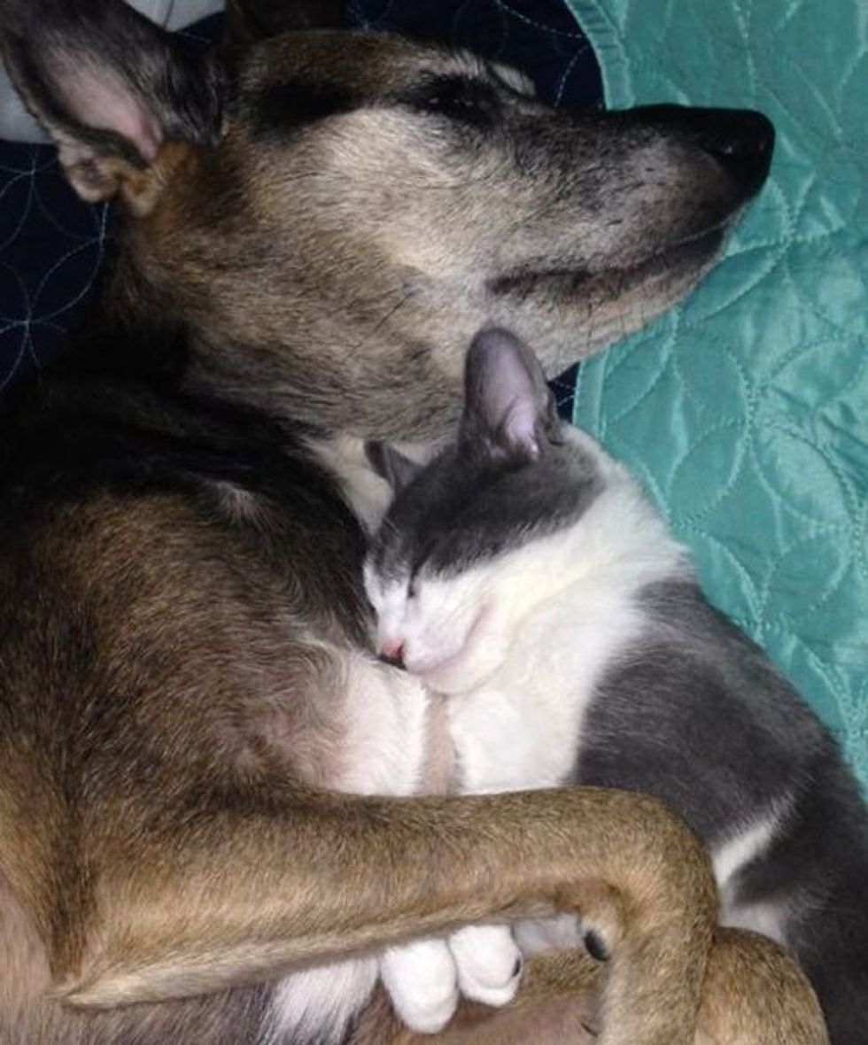 Snuggling with her little human friend.
