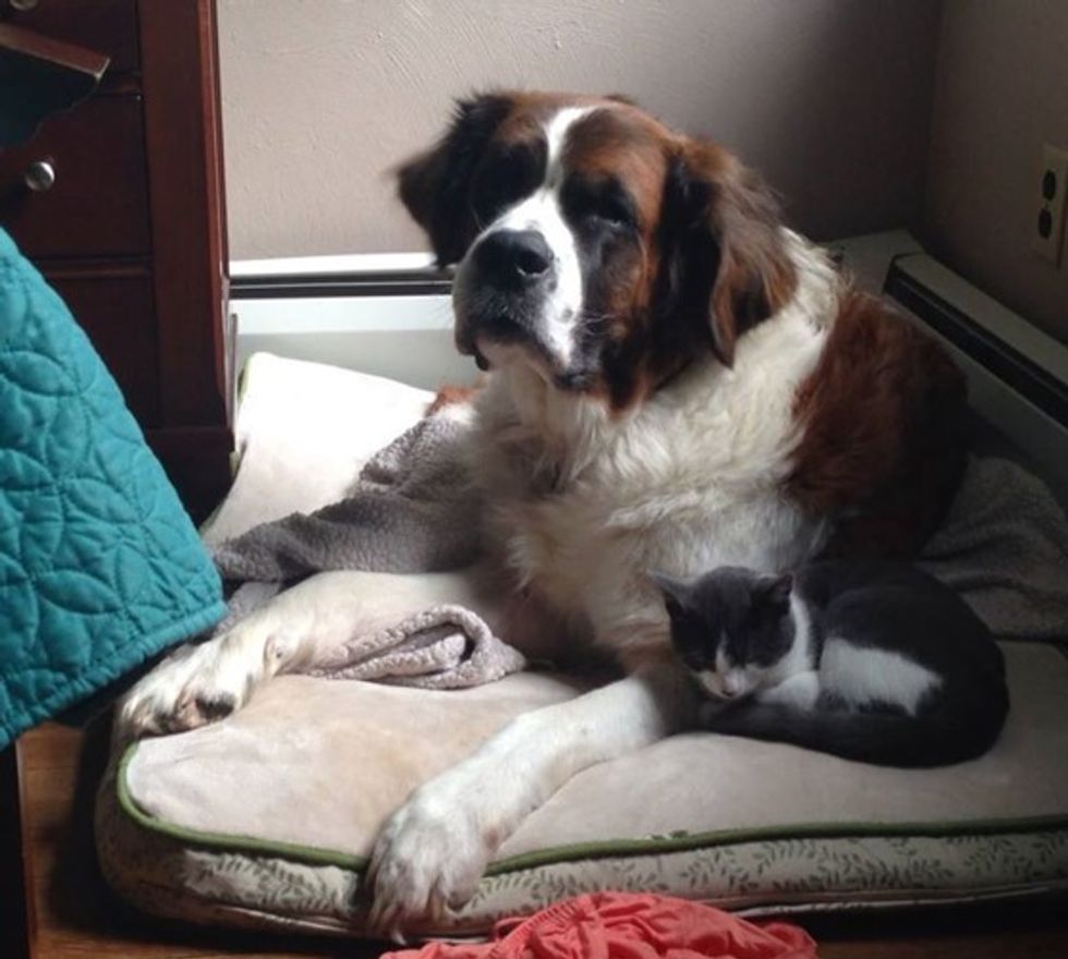 Lexi the St. Bernard took her under his arms.