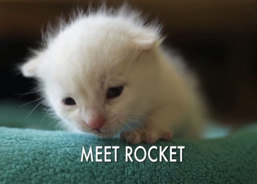 He was found in a granite yard. Rocket almost didn't get a chance at a new life because of how tiny he was. The Cats at the Studios came to the rescue and took him into their care.