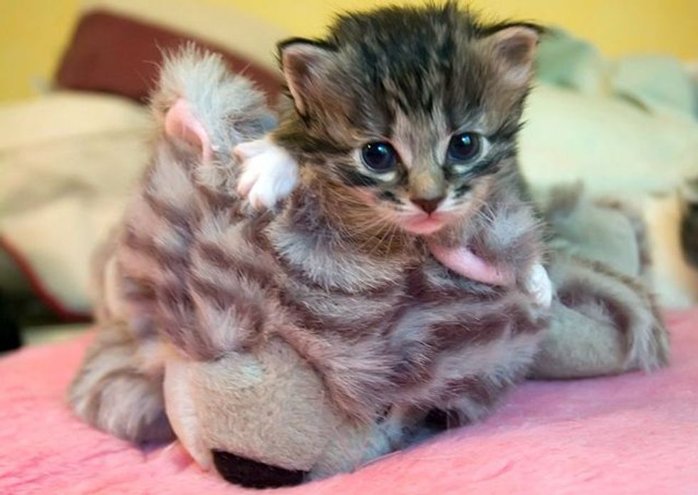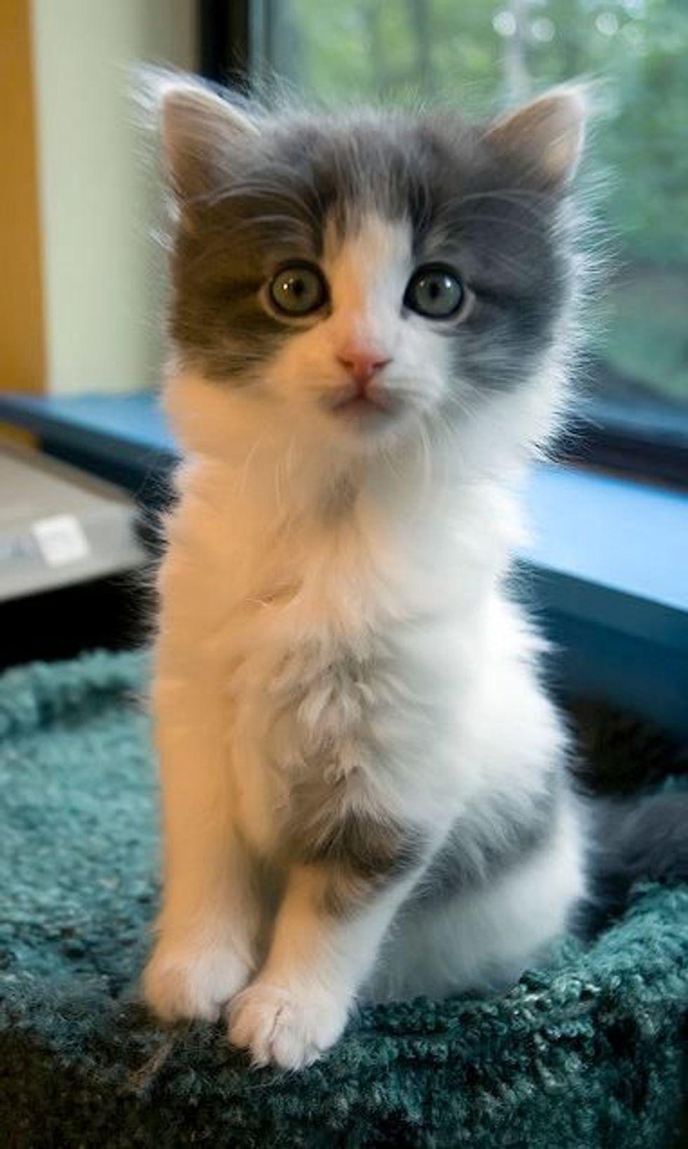 "I was working on socializing Poppy when she just made herself at home on my shoulder and fell asleep. I was her cat bed for about an hour. During that time, I got to see her dream, as she twitched and wriggled in my arms. This is one sweet kitty."