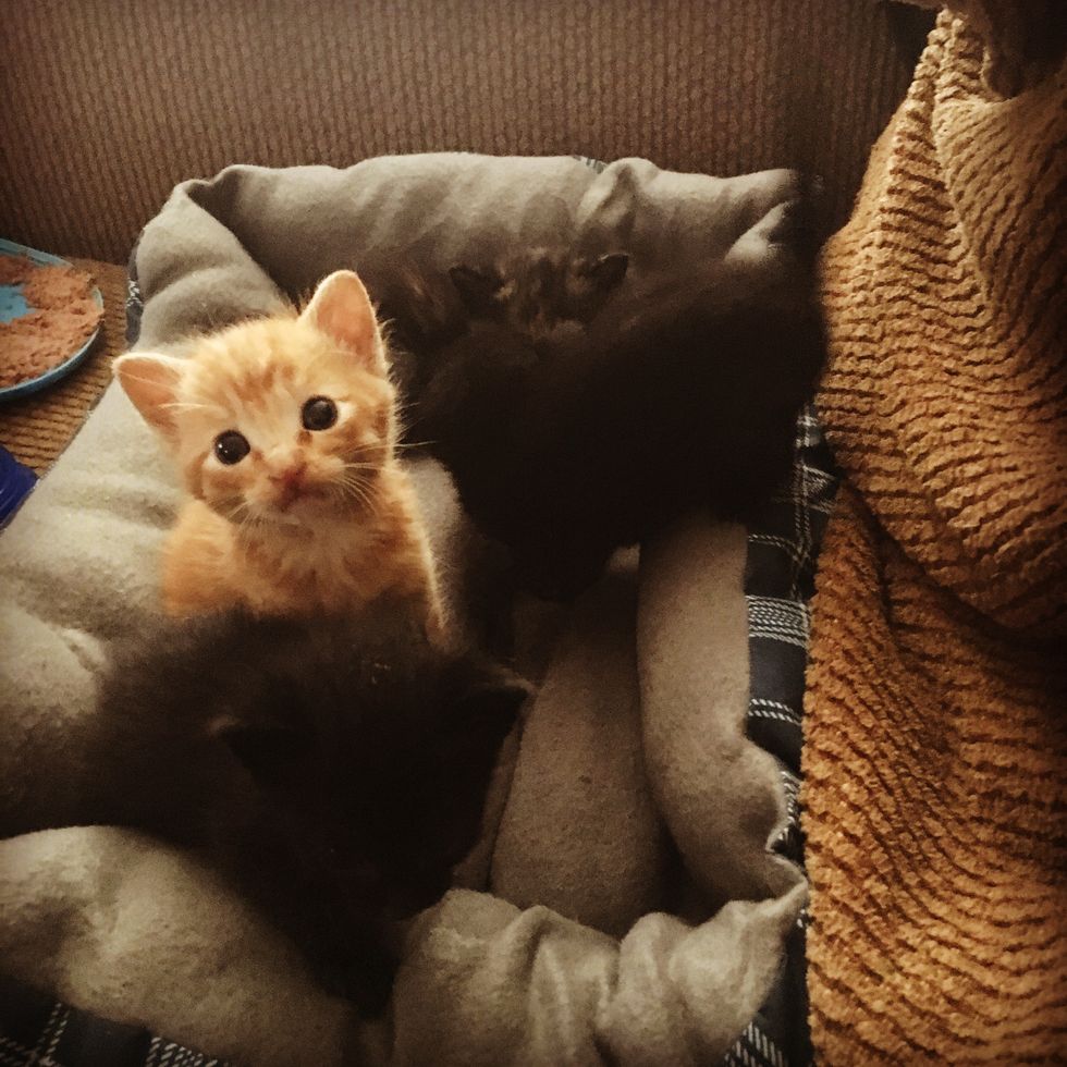 The kittens are thriving in foster care. K gives them supplement to help reduce mama's stress.