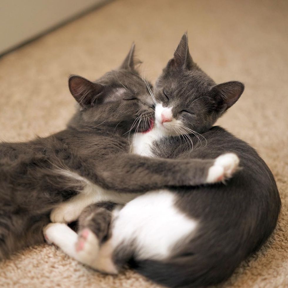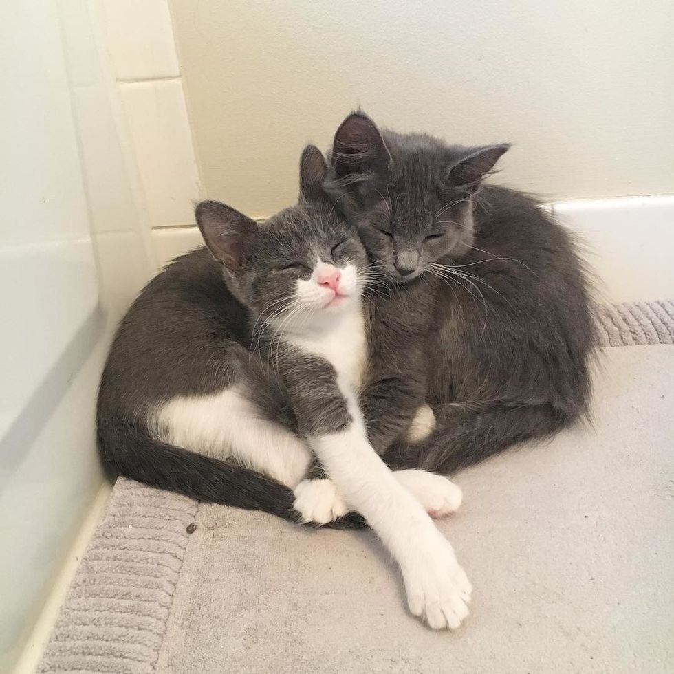"I woke up to find them like this in the bathroom - their love for each other is unreal. Forget bear hugs - kitten hugs are where it's at."