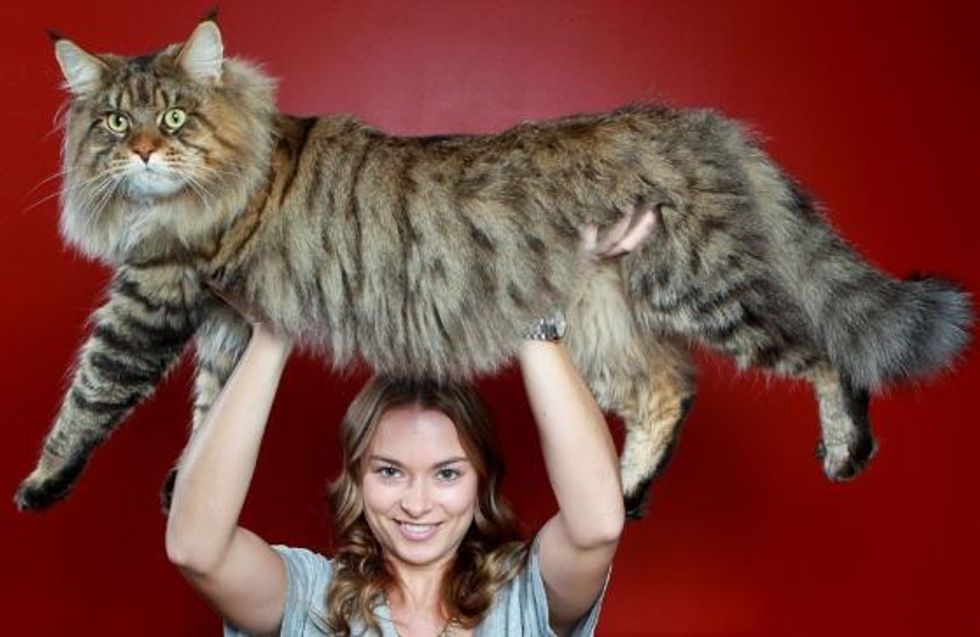 The Telegraph reported: "Natalie Chettle lifts her mother's Maine coon cat Rupert over her head. Nearly three years old, Rupert is already three times bigger than the average domestic cat and is expected to gain another 5kg in the next few years..."