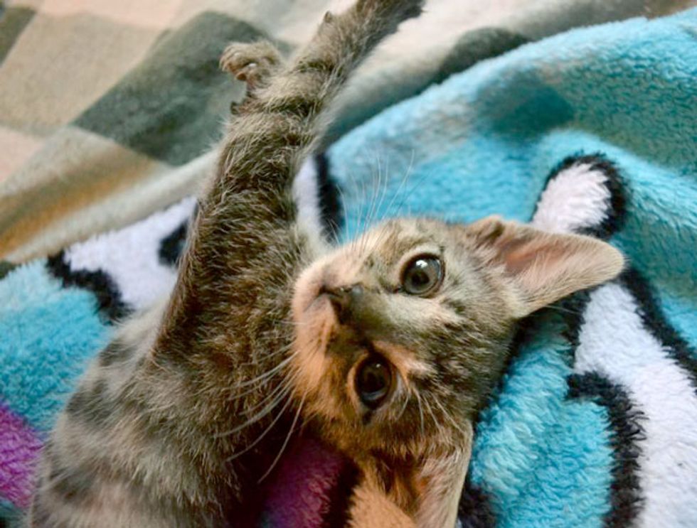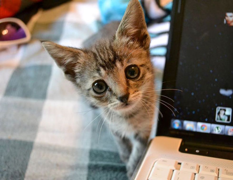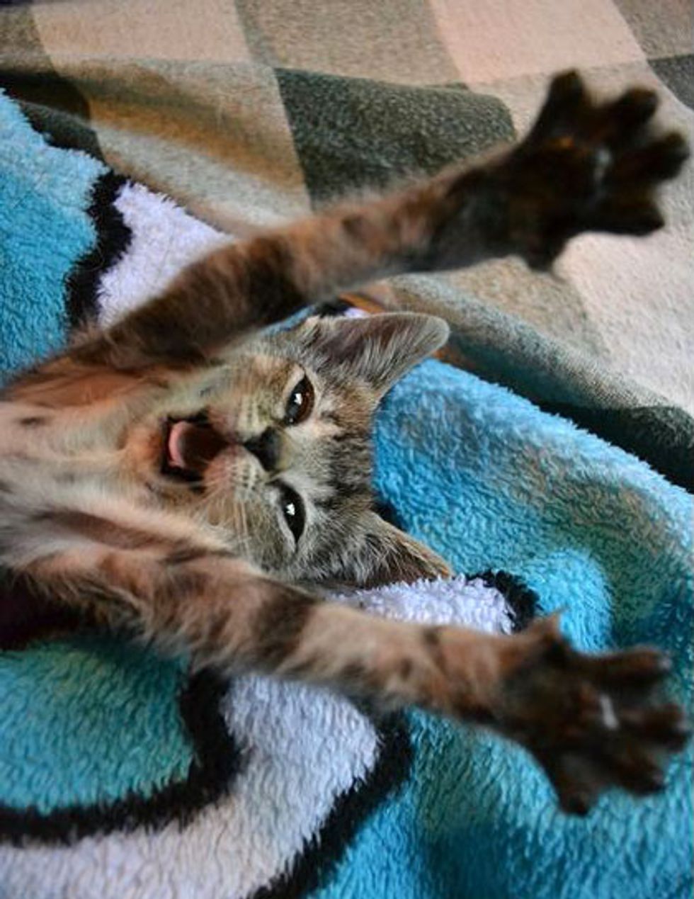 Russell was born a runt, a much smaller kitty than his siblings. Though very tiny, he never lacks spirit. "All of the others had been adopted but no one wanted Russel. My mom and I couldn't bear to leave him, so we took him home on the same day and Russel has been with us ever since," said Andie Scott.