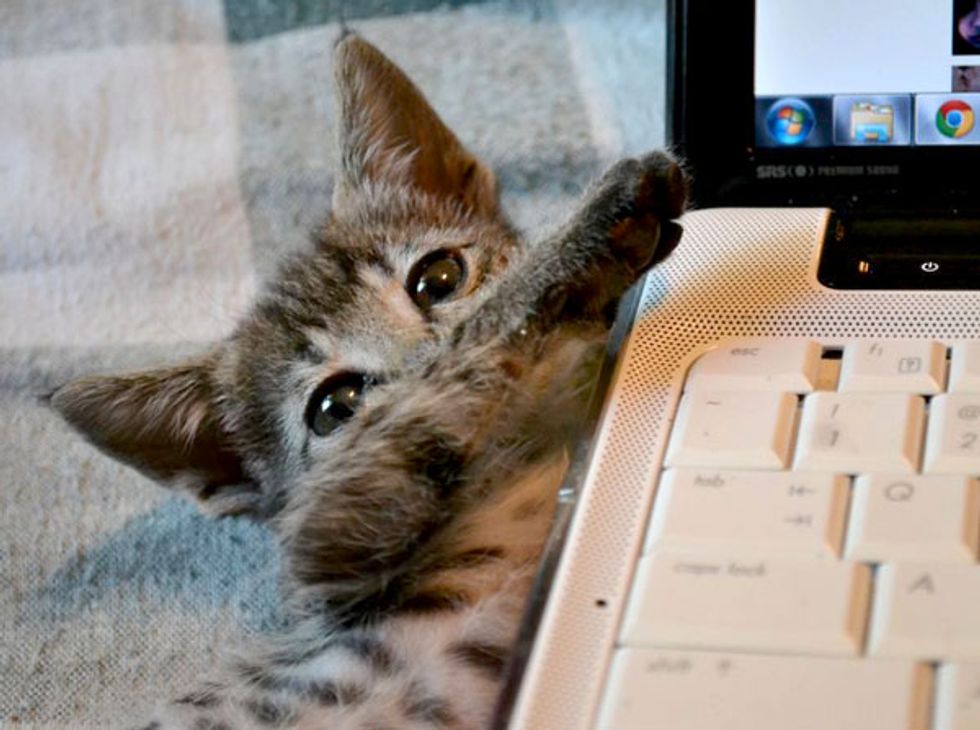 Russell has become Andie's best friend since the day he stepped into his new home. He tags along with her and never leaves her sight. When Andie is using the computer, he'd fall asleep on the keyboard and occasionally types out his meow literature on the computer. "I feel blessed to have him in my life," said Andie.