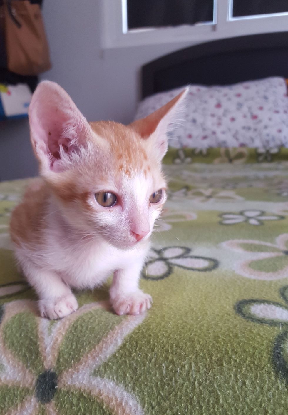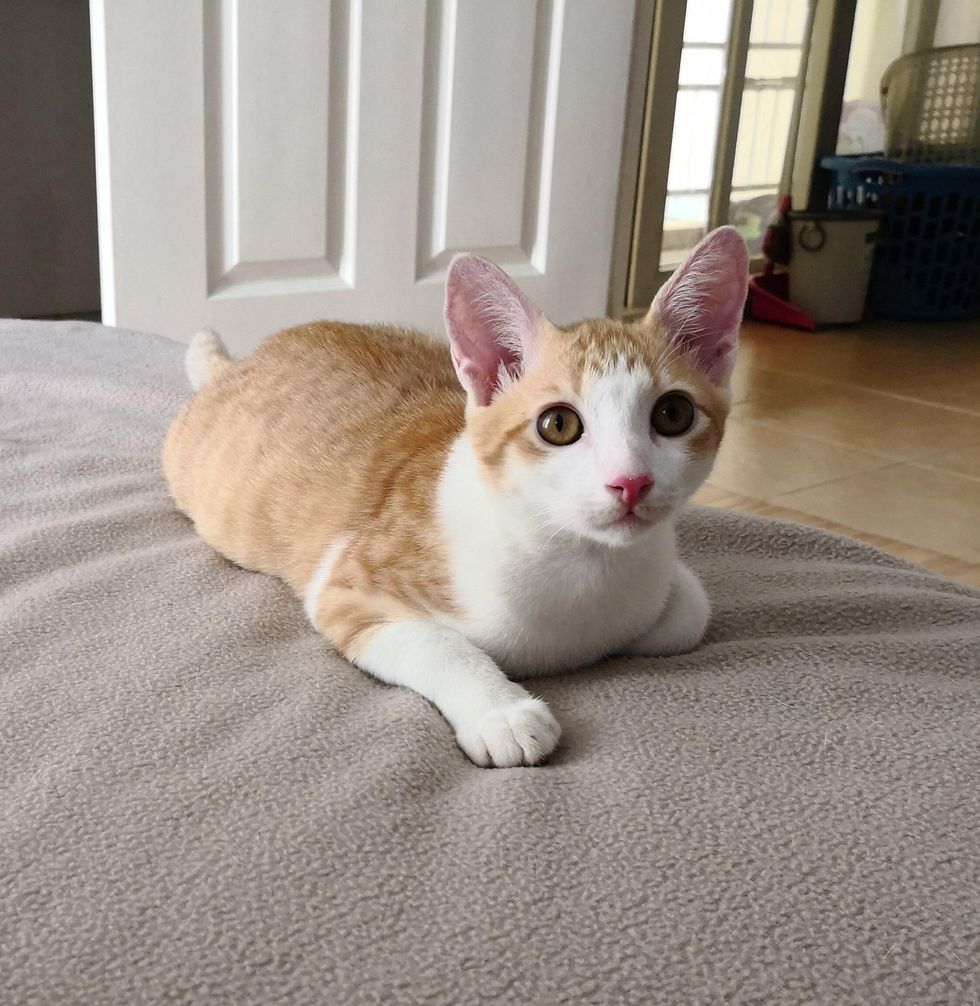 The couple took the kitten to the vet, had him dewormed and all cleaned up. In just a few days, the little ginger bounced back on his paws.