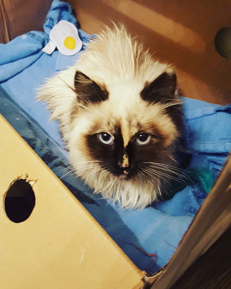 The kitty got a much-needed flea bath and a full belly at last. "The first day, she ate a ton of food."