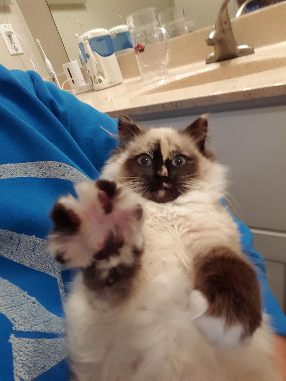 "I found the little one along with the other coach and the captain of the team," the coach shares with Love Meow. "The captain asked if we could name her Regent… It's the mascot of the high school I coach at."