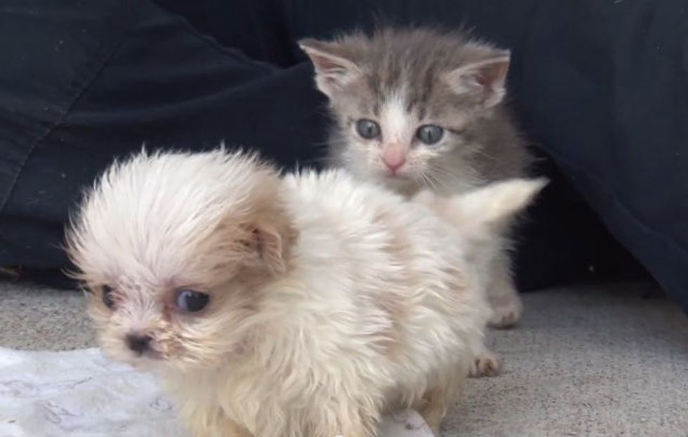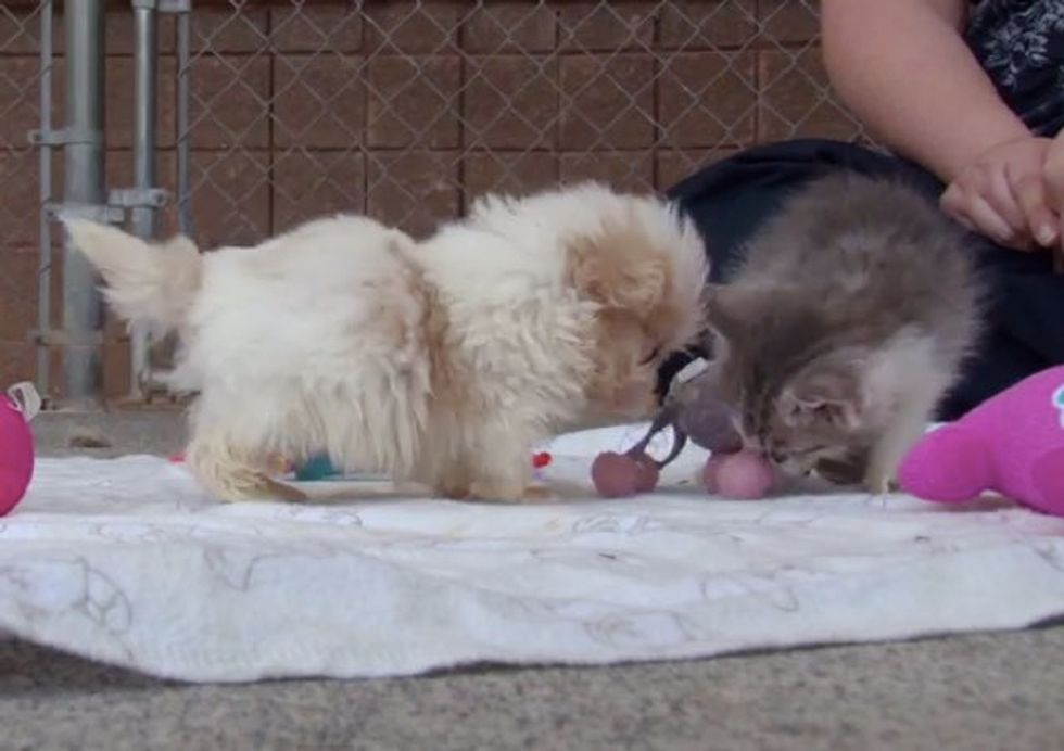 WATCH VIDEO: Rescue kitten and puppy become friends at shelter