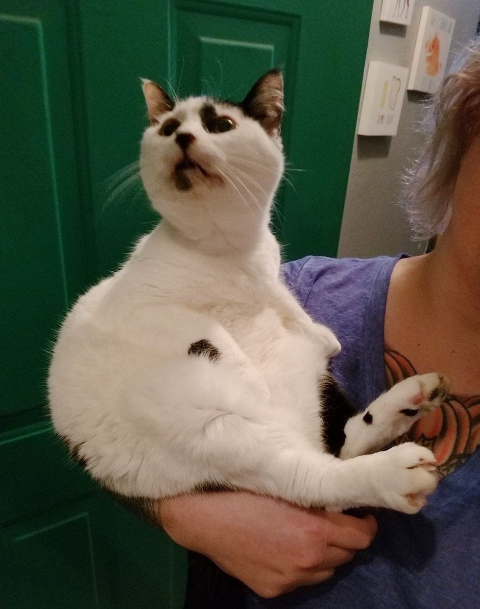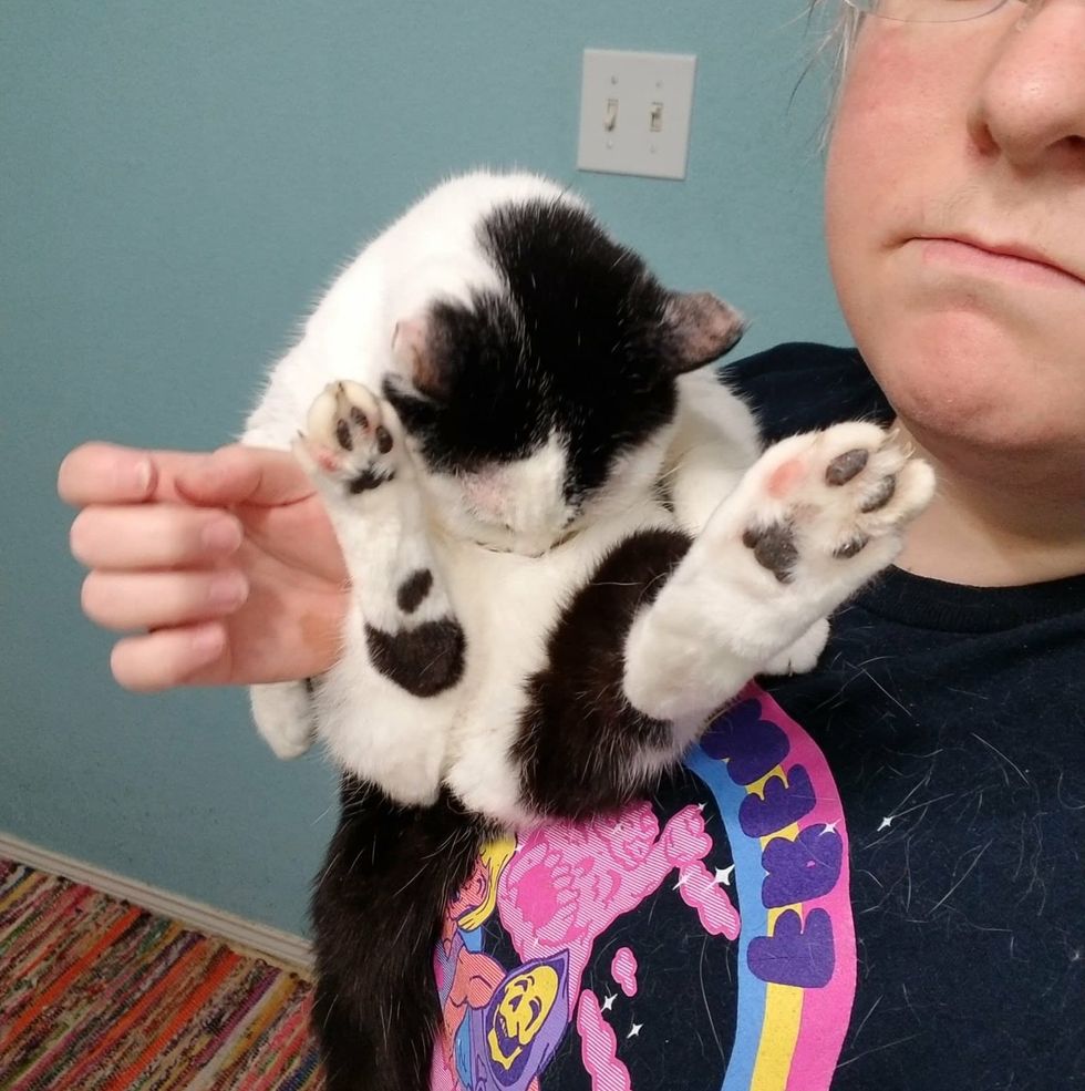 "She only weighs about five pounds, but she has lots of extra, squishy skin. She's purrfect."