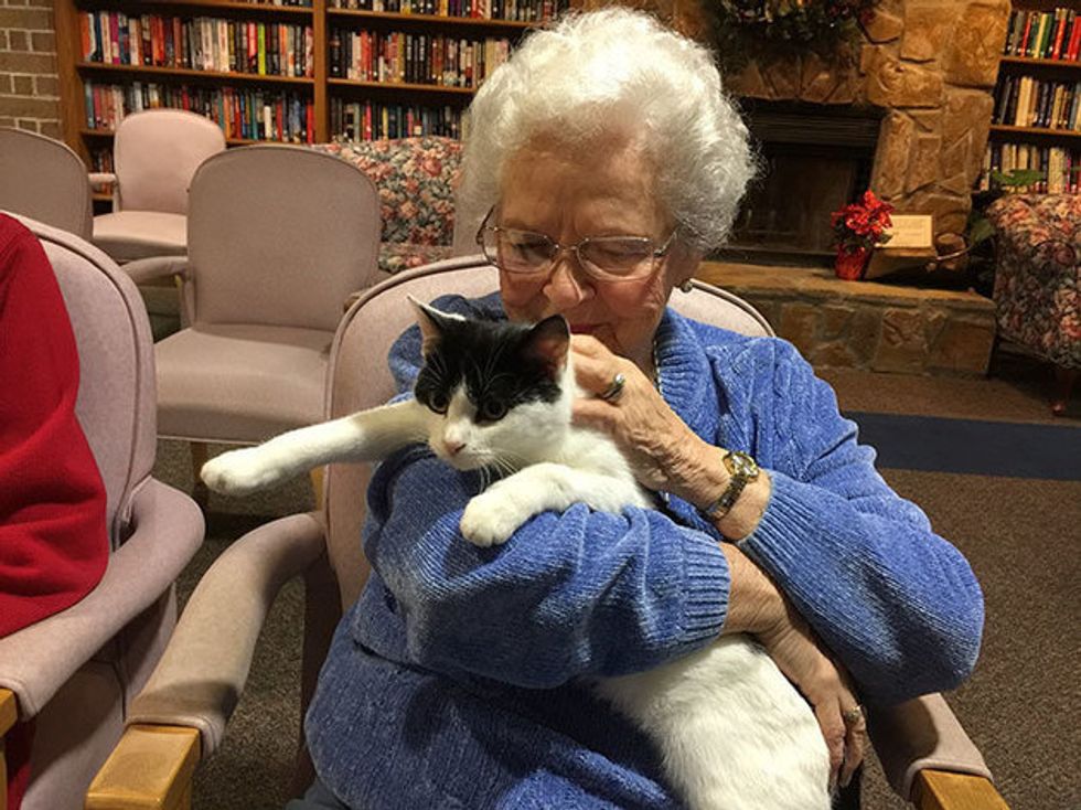 Many older cats that ended up in the shelter miss having the comfort of a loving home. Just like residents at nursing homes, who miss their loved ones, they can relate to each other.
