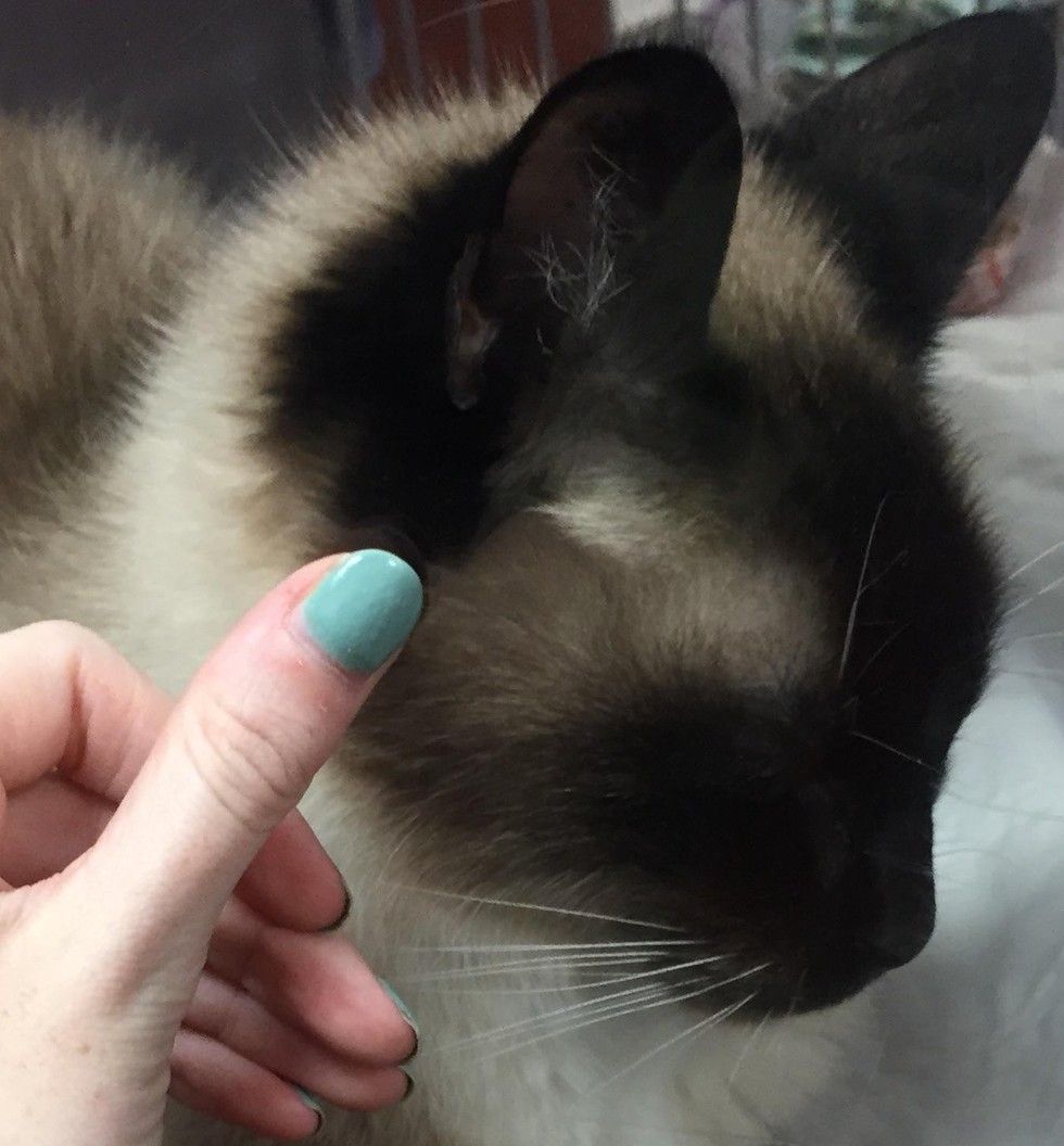 "When I first saw him in the shelter, I could see how lonely he was. When I put my hand up against the glass, he rubbed his head where it was, trying to pet himself through the glass," Samanthajane92 told Love Meow.