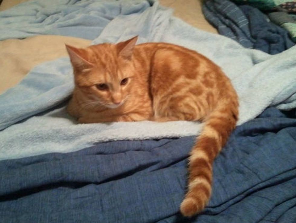 When reddit user wingless7 visited the shelter, a ginger cat decided to crawl up and curl up on his shoulder. It was as if the kitty said "I choose you to go home with."