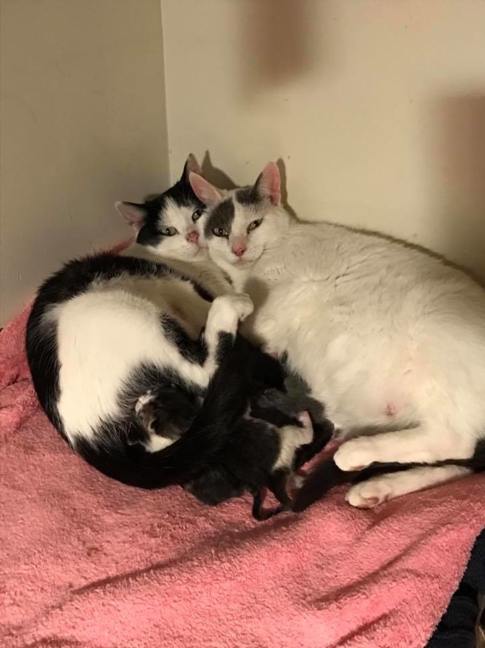 These two cats had never met until they were rescued and taken into a local shelter in Indiana. They were both found pregnant and expected to have babies soon.