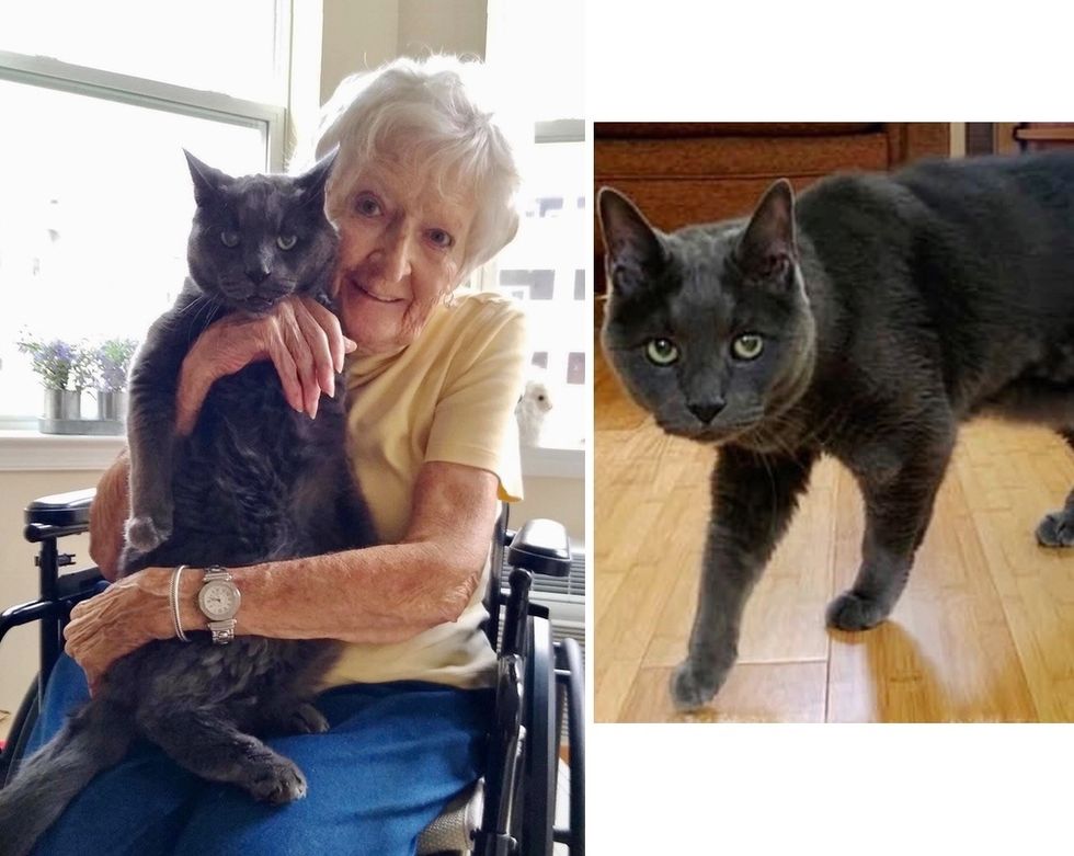 "The pandemic has been so hard on the residents of assisted living facilities and their loved ones, who cannot visit, share a hug or even a touch," the shelter wrote. "LL Cool J (now renamed Raven) is allowed to live with this lady thanks to their pet policies, which permits residents to have one well-behaved, vaccinated pet weighing no more than 25 pounds. Talk about a win-win for both senior humans and senior pets."