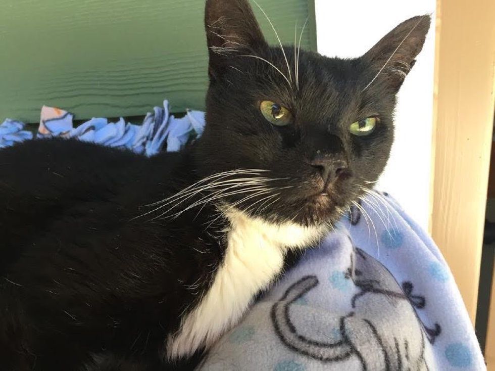 This remarkable senior cat quickly won the hearts of every staff and volunteer at Purrfect Pals. "He is a classy little pocket kitty at just under eight pounds and wearing a spiffy tuxedo coat with white mittens," the rescue shared with Love Meow.