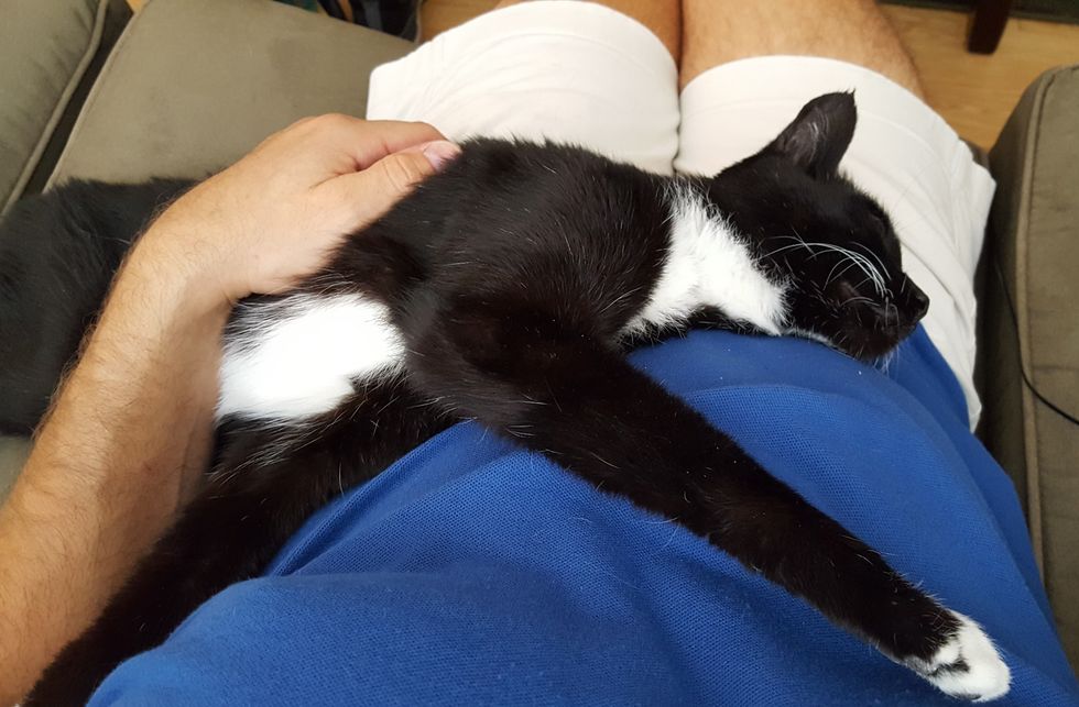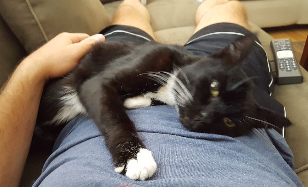 "He bonded with me right away. He was my shadow the first few days. Whenever I sit or lay down, he's right there to curl up with me," Tim told Love Meow.