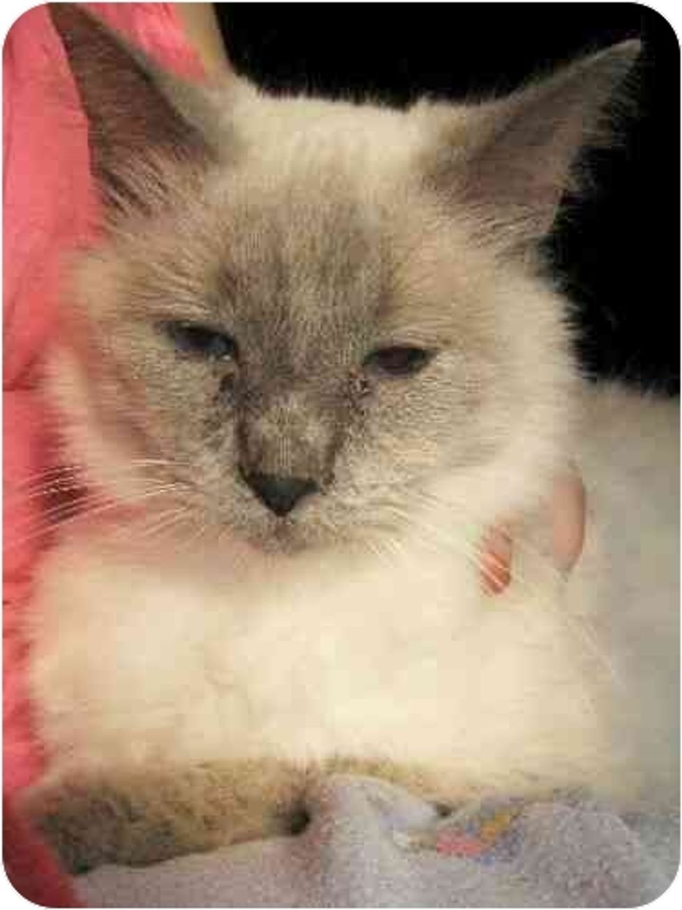 As scary as it is for any owned cat to lose her family and end up in a shelter, it was even worse for Morgana. She is completely blind So she couldn't even see what was happening to her. She just sat in the back of the cage terrified and shivering. But, despite being so scared, sweet Morgana never lost her sweet temperment. She still purred for people and never offered to lash out at them.