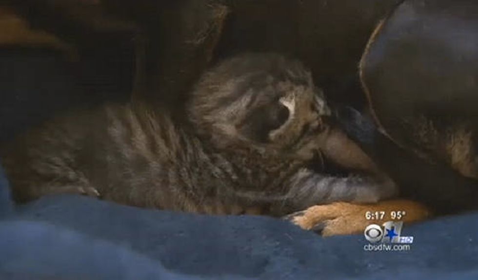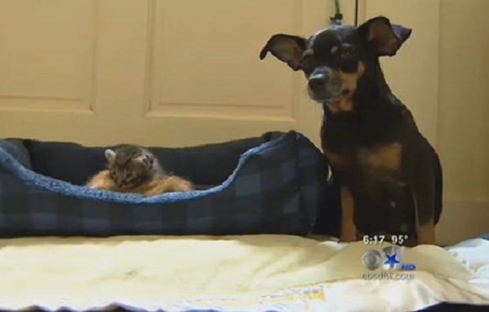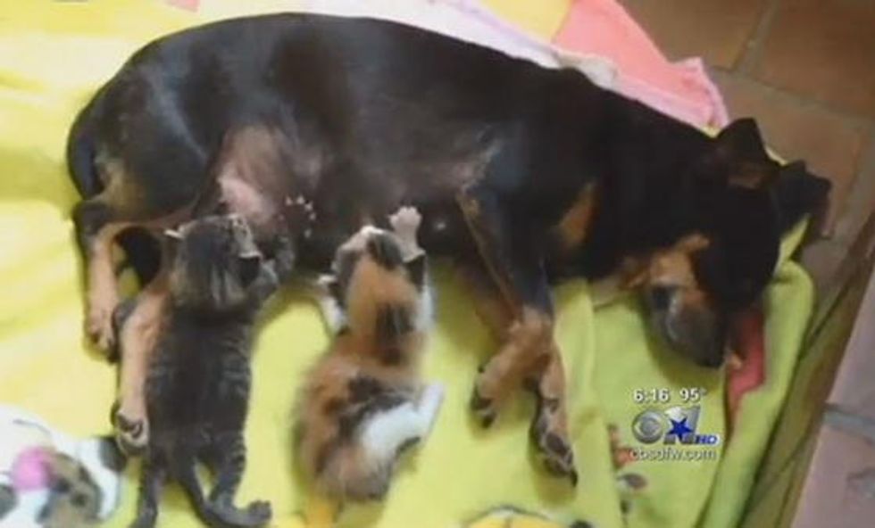 "I looked and saw two little balls of fur with her and I thought it was a couple puppies. I went to move them into a cage and moved the mama dog out of the way; much to my surprise mama dog is nursing two kittens instead of two puppies," said Officer Steven Johns.