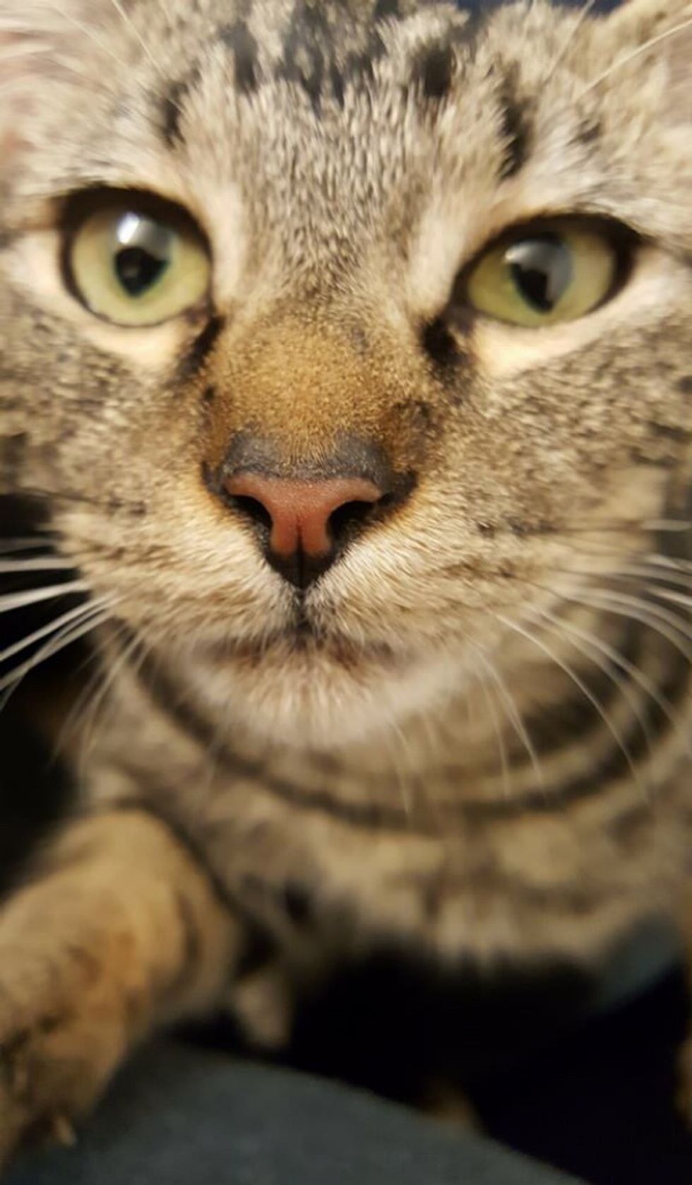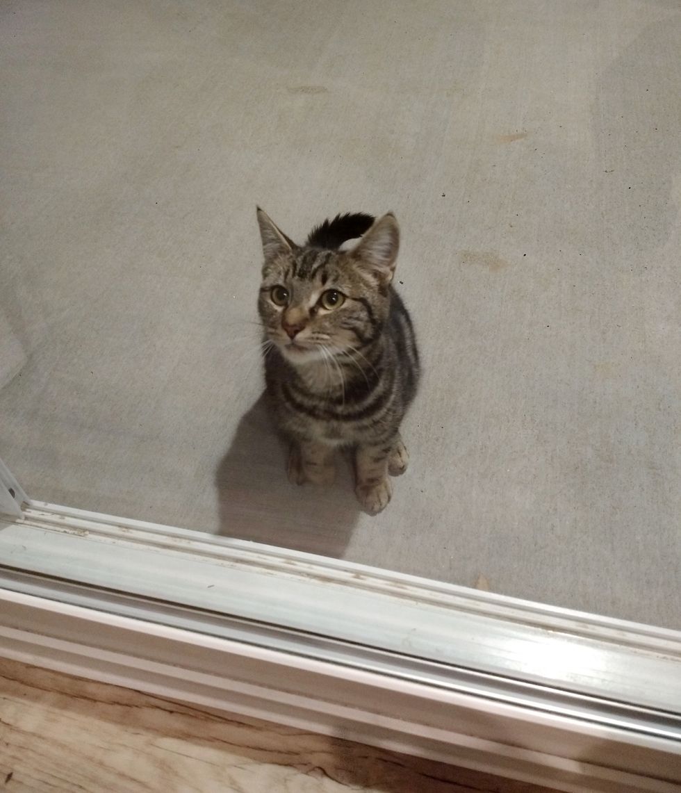 On November 17, a family's cat found a stray outside their house, rummaging for scraps. Their cat's reaction alerted them, and when they tried to approach the kitty, she would run away.