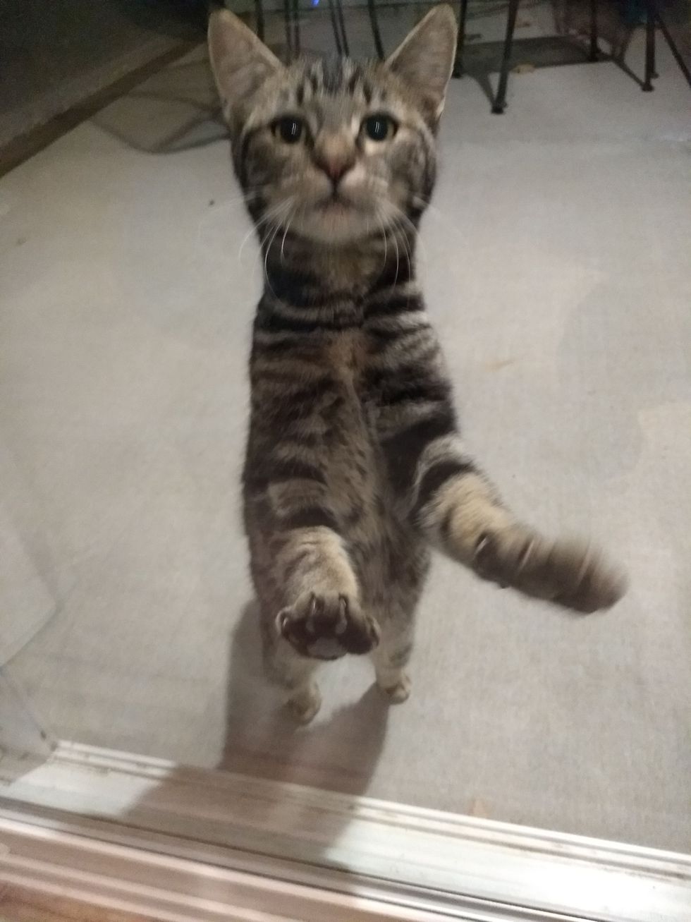 "We couldn't tell if she was a kitten or just petite. At this point we couldn't tell if she was a boy or girl because she wouldn't let us near her to pet her."