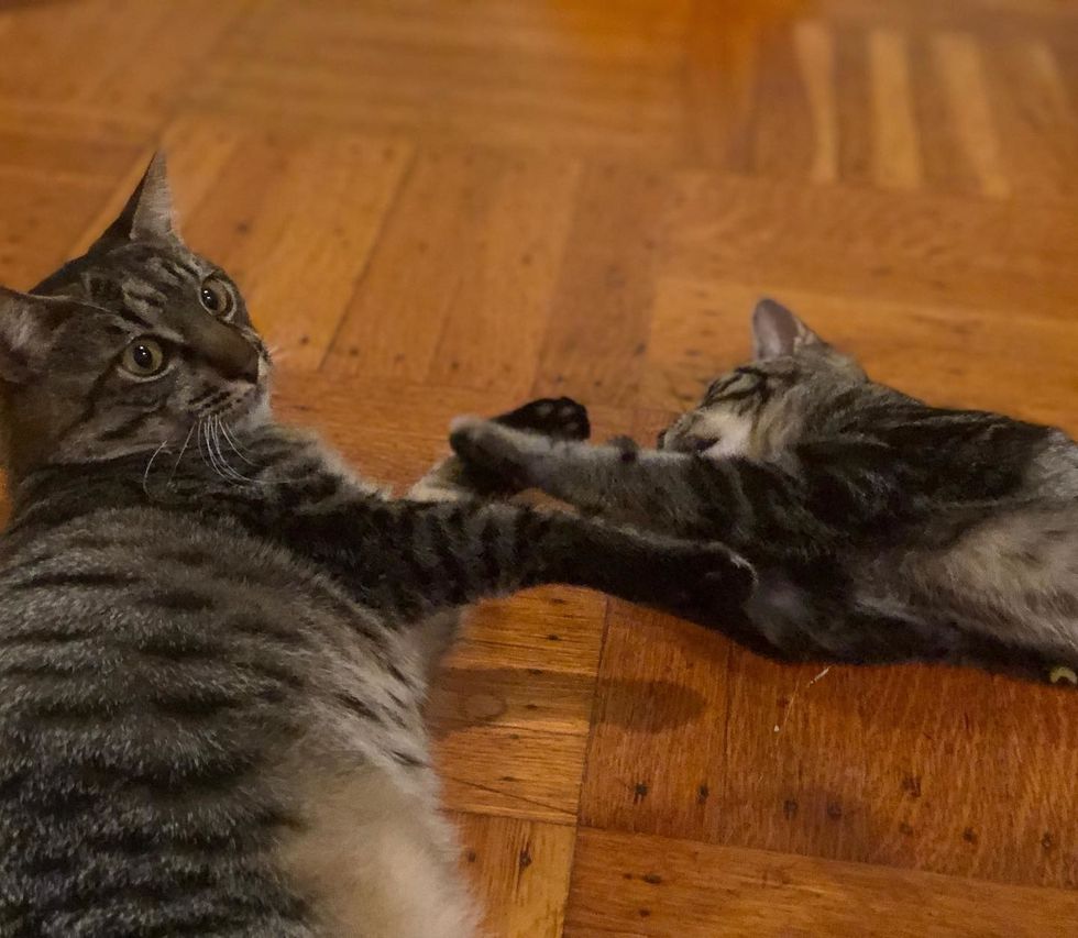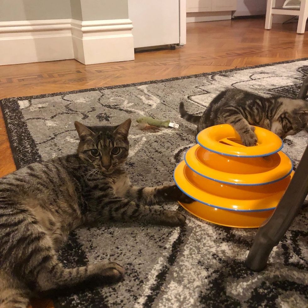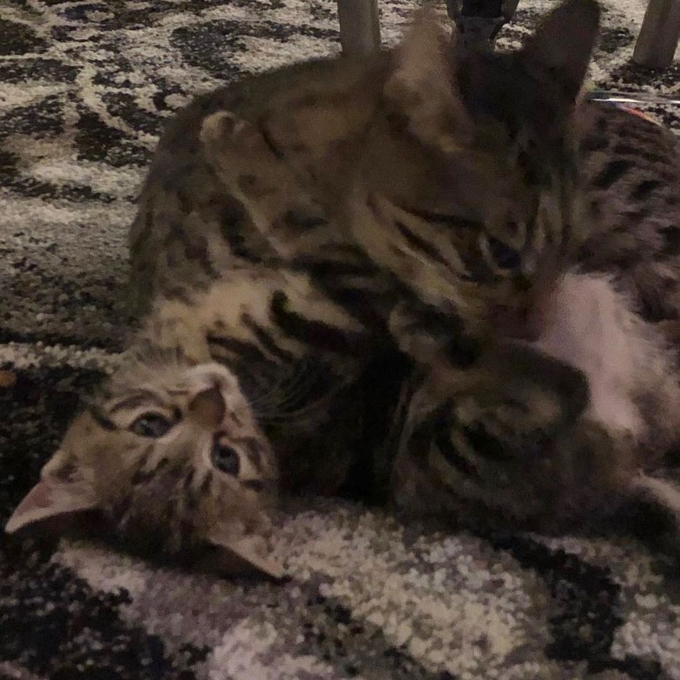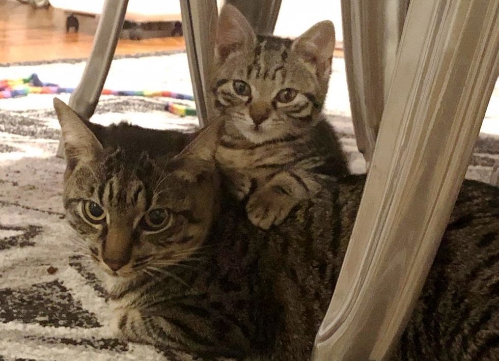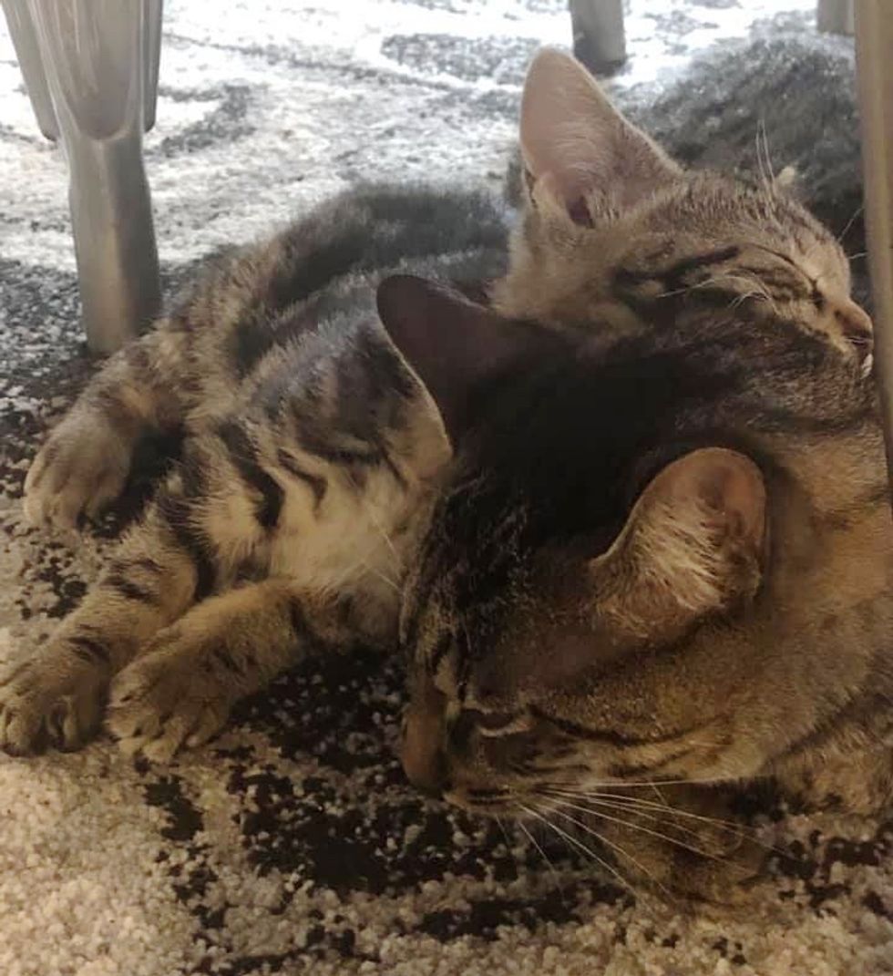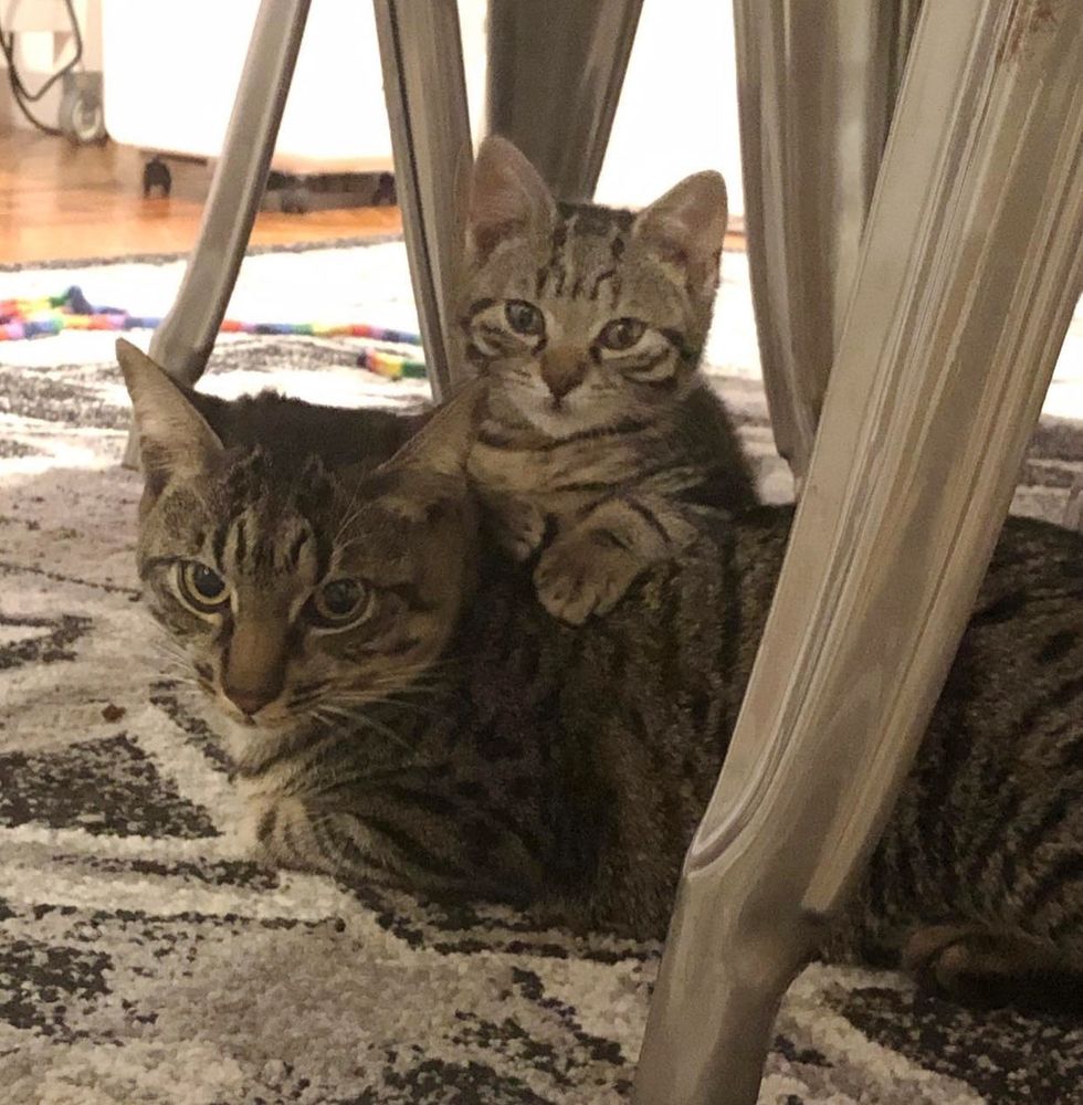 Late March, Nikki was contacted about a kitten that had been found on the streets. The tabby, named Sazón, was all alone and needed a friend — Nikki immediately thought of Mouse.