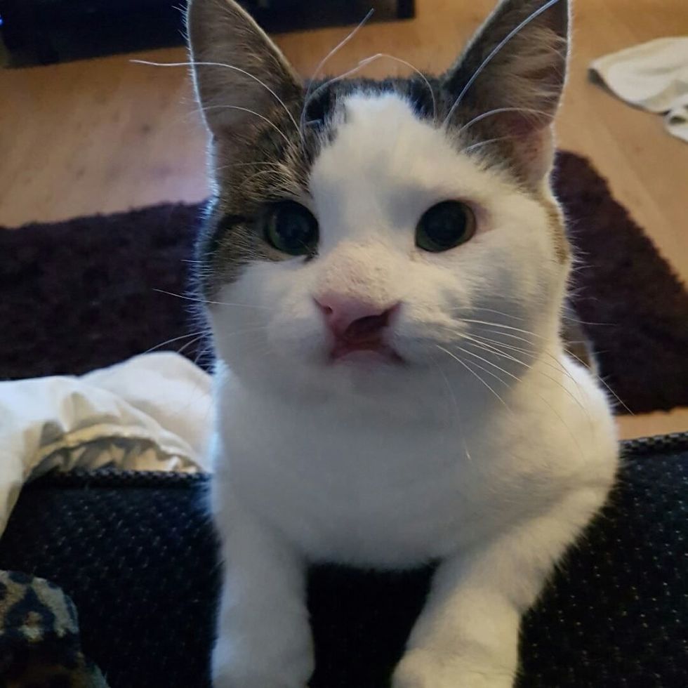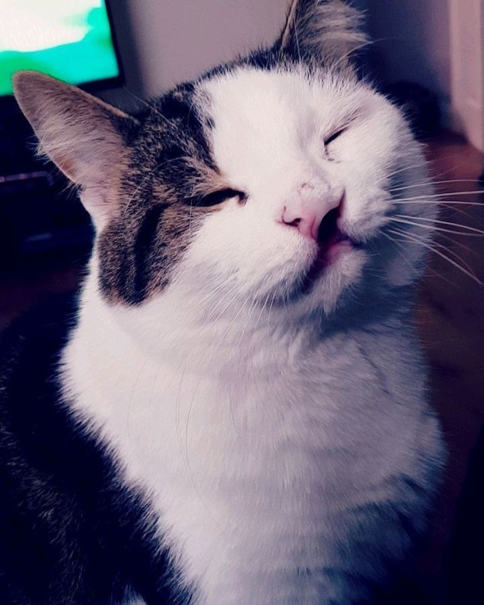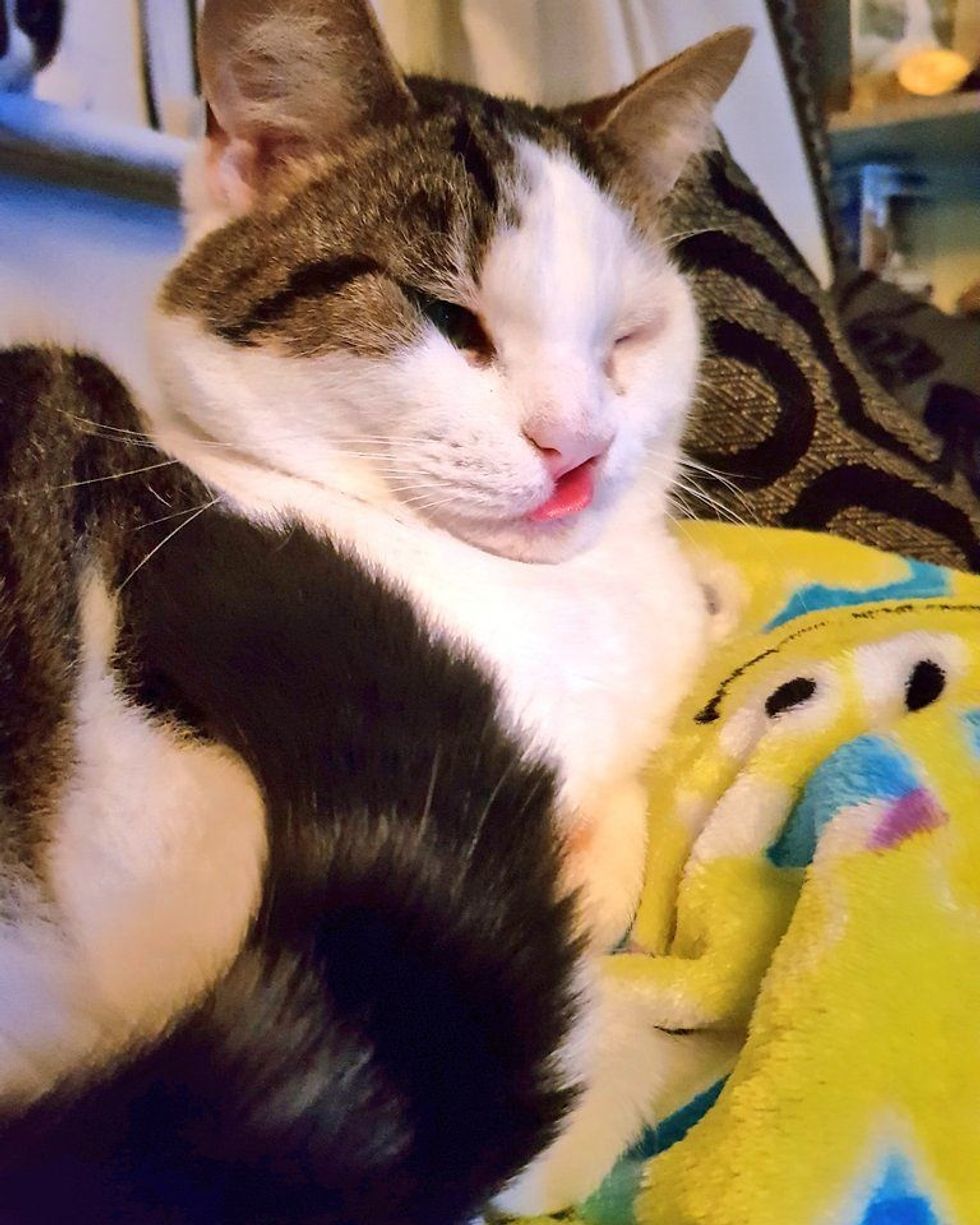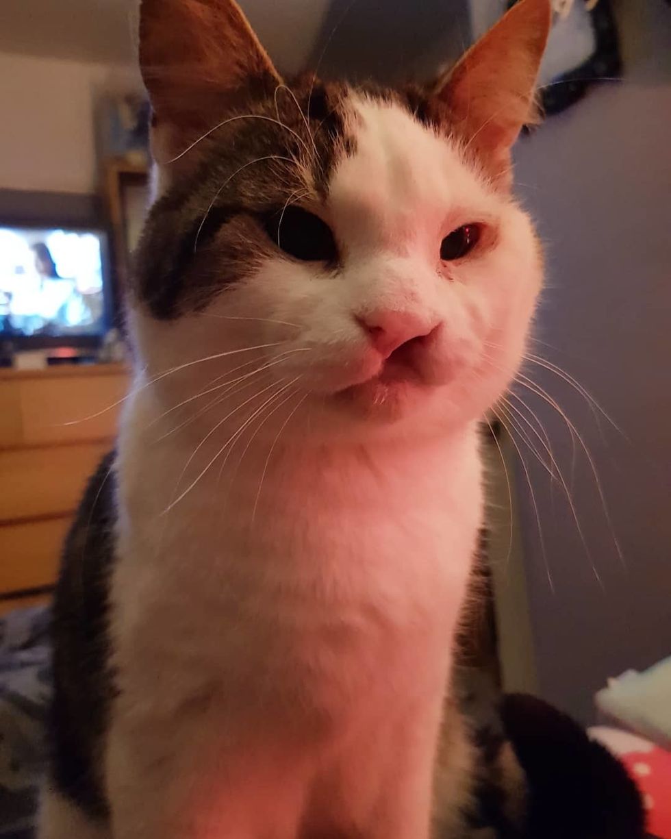 Victoria was at the Cats Protection Adoption Center (in St Helens, Merseyside, UK) with a friend 1.5 years ago. She hadn't planned to adopt a cat but one of the kitties caught her attention - it was a beautiful 8-month-old cat with a cleft lip.