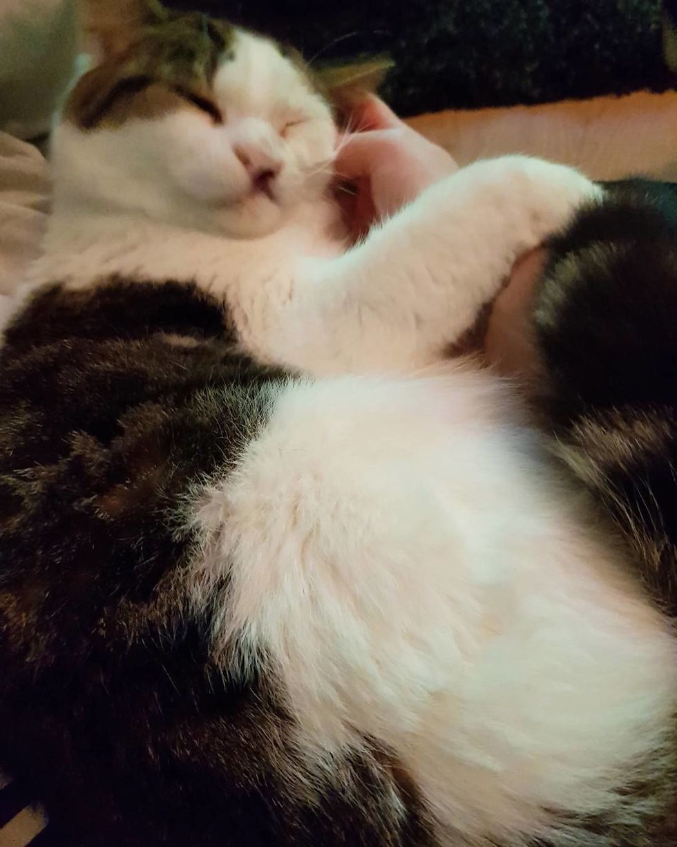 "He loves to roll on his back for tummy strokes and loves cuddles with me."